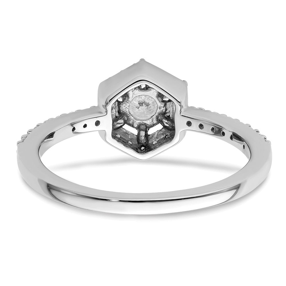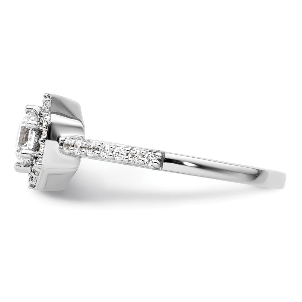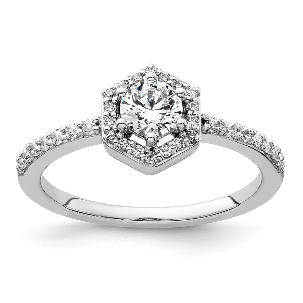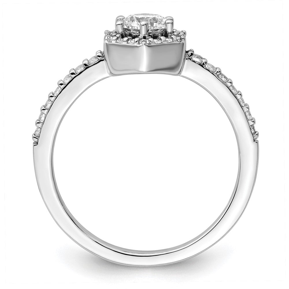The 14k White Gold 5/8 Ct. Lab Grown Diamond Round Geometric Halo Engagement Ring is a stunning piece that dazzles. Crafted from 14k white gold, this ring shines brightly with a polished finish. Its centerpiece is a round, lab-grown diamond surrounded by a halo of 32 smaller diamonds, all boasting VS/SI clarity and G+ color. Each diamond has been carefully chosen for its sparkle and precision. The ring features a rounded edge for comfort and an open back for elegance. Make the moment unforgettable with this exquisite 14k White Gold Halo Engagement Ring.