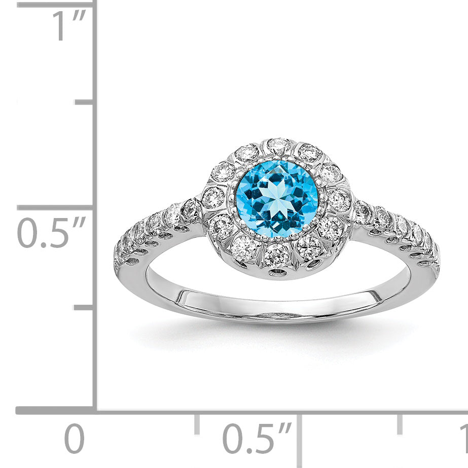 14k White Gold 5mm Blue Topaz Checker A Diamond ring