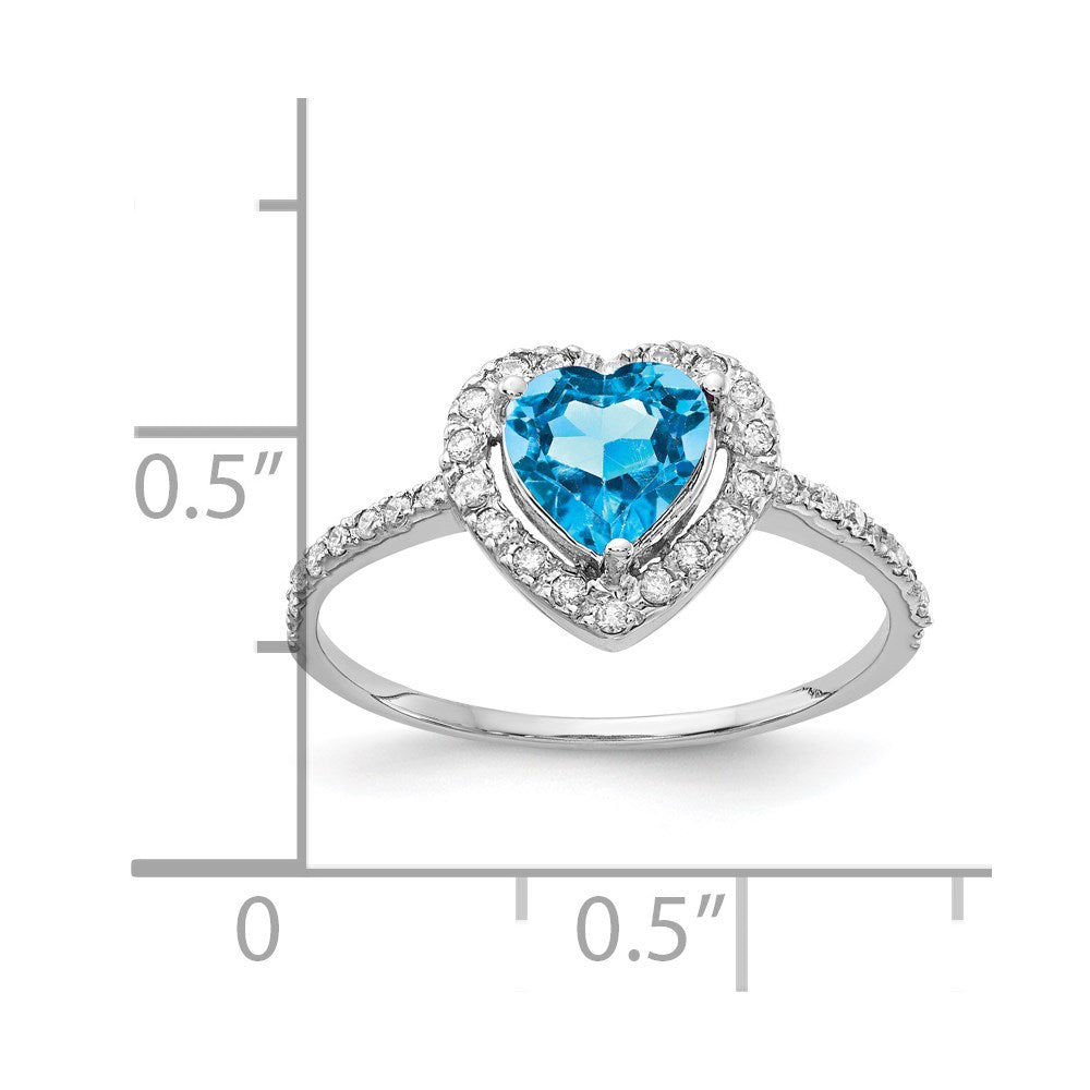 14k White Gold 6mm Heart Blue Topaz A Real Diamond ring