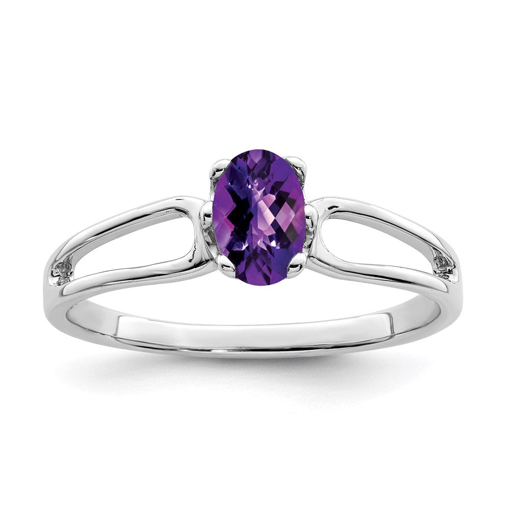 14k White Gold 6x4mm Oval Amethyst Checker ring