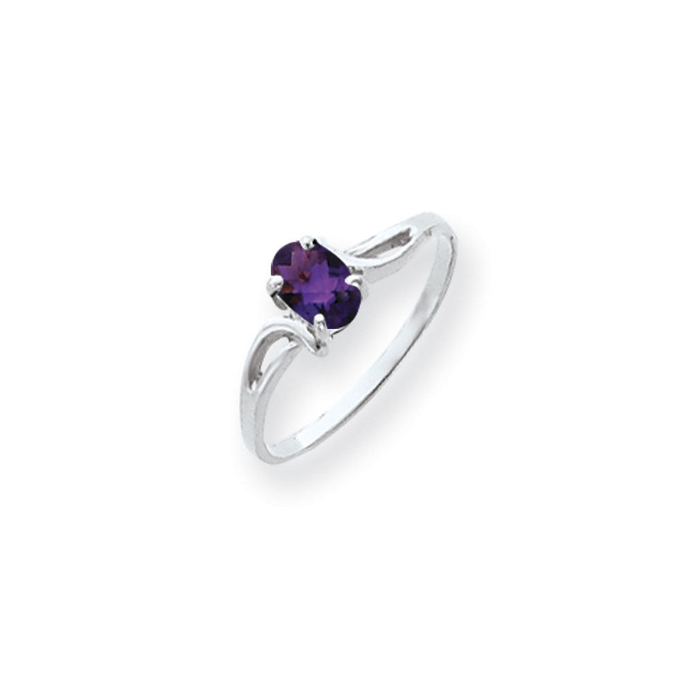 14k White Gold 6x4mm Oval Amethyst Checker ring