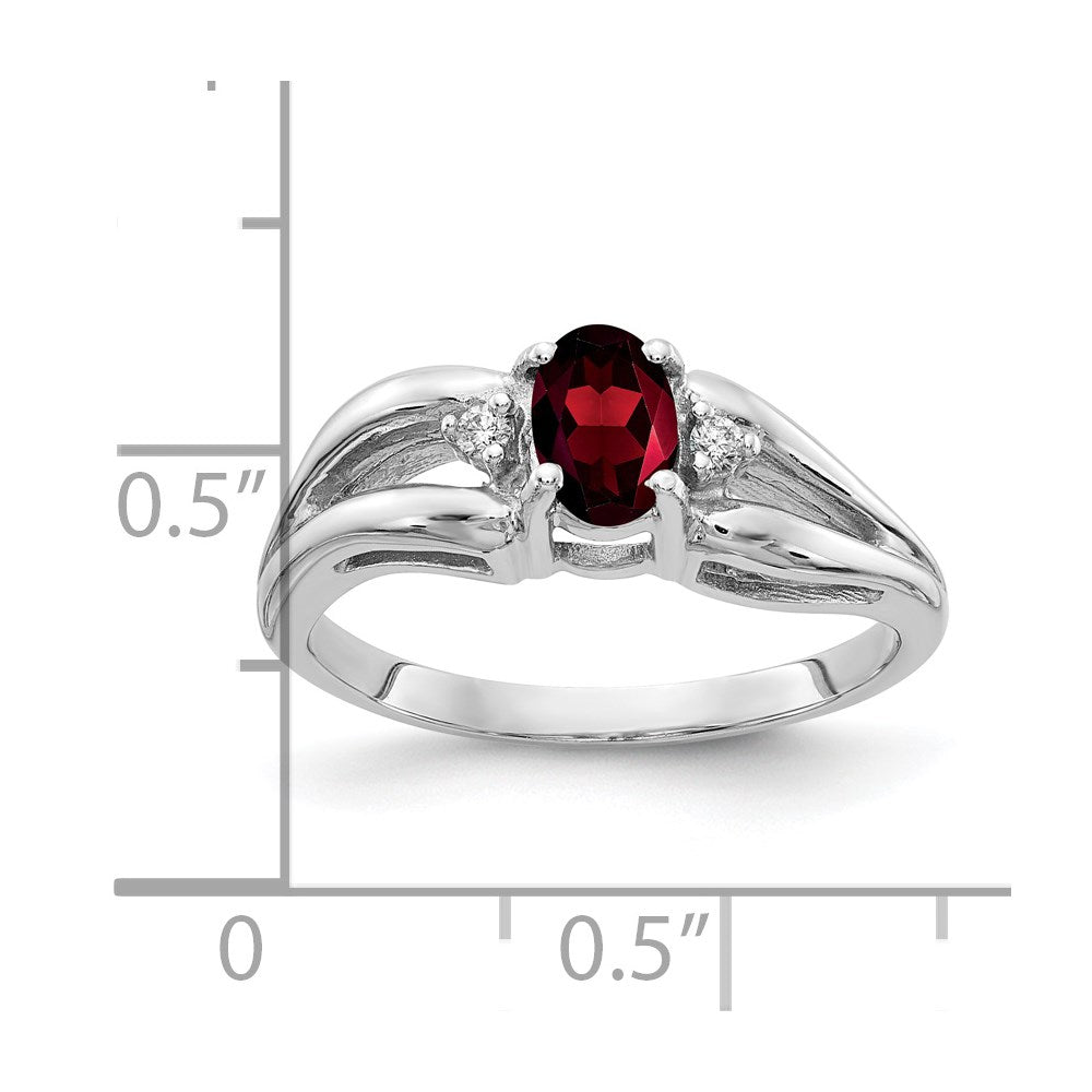 14k White Gold 6x4mm Oval Garnet Checker AAA Real Diamond ring