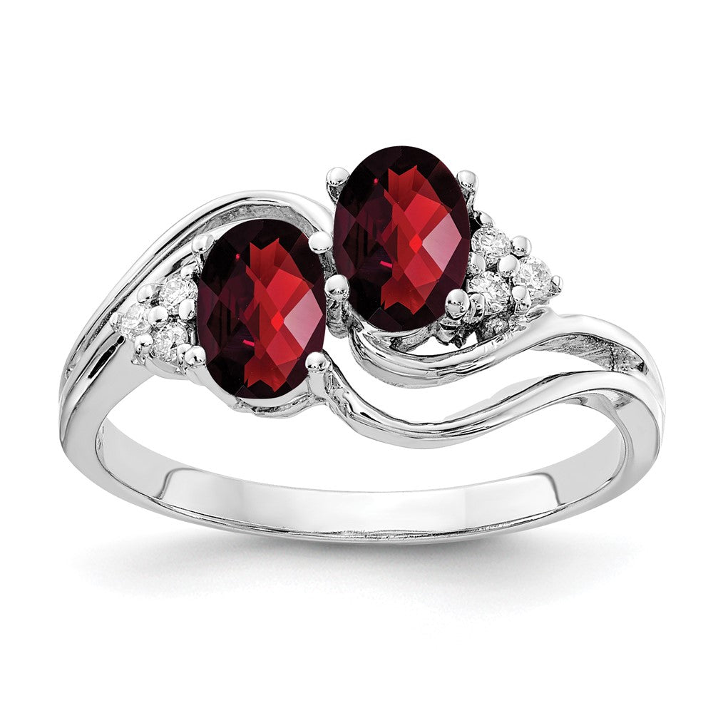 14k White Gold 6x4mm Oval Garnet Checker AAA Diamond ring