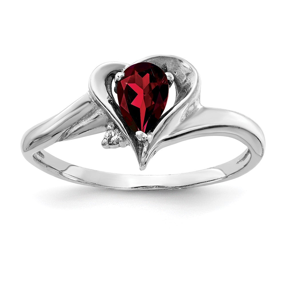 14k White Gold 6x4mm Pear Garnet VS Diamond ring