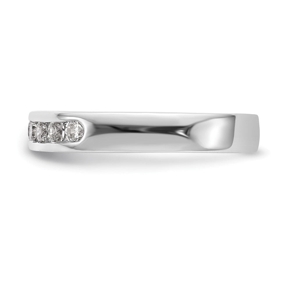 The 14K White Gold 14K 7-Stone 1/3 Carat Round Diamond Complete Channel Band is a stunning piece for those who seek timeless elegance. Crafted from polished 14K gold, this ring features seven natural round diamonds with a total weight of 0.35 carats. The diamonds shine with a white hue and are set securely in a channel style, ensuring durability. Its solid build and detailed craftsmanship make it perfect for special occasions or as a wedding band. The size is adjustable, and the ring’s sleek design offers a blend of style and strength. The 14K White Gold 14K 7-Stone 1/3 Carat Round Diamond Complete Channel Band truly shines as a piece to cherish.