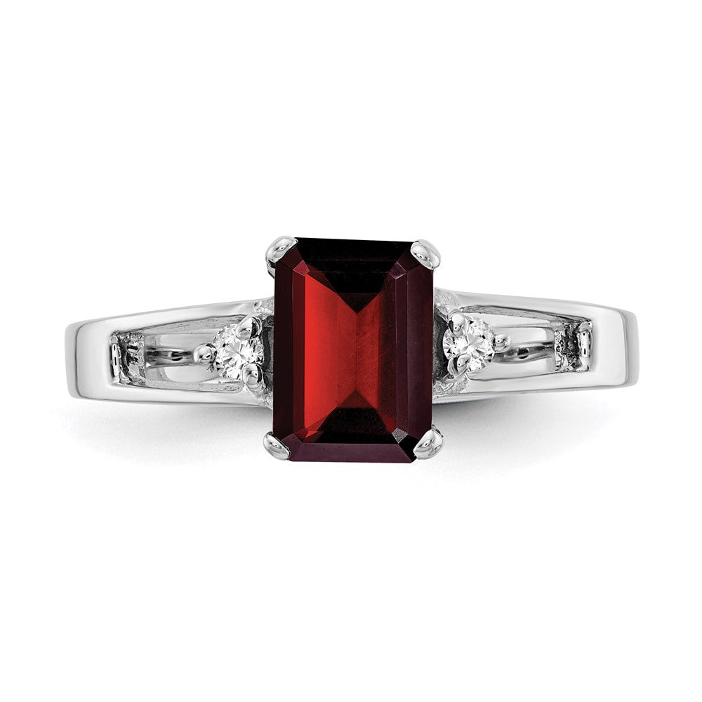 14k White Gold 7x5mm Emerald Cut Garnet AA Diamond Ring