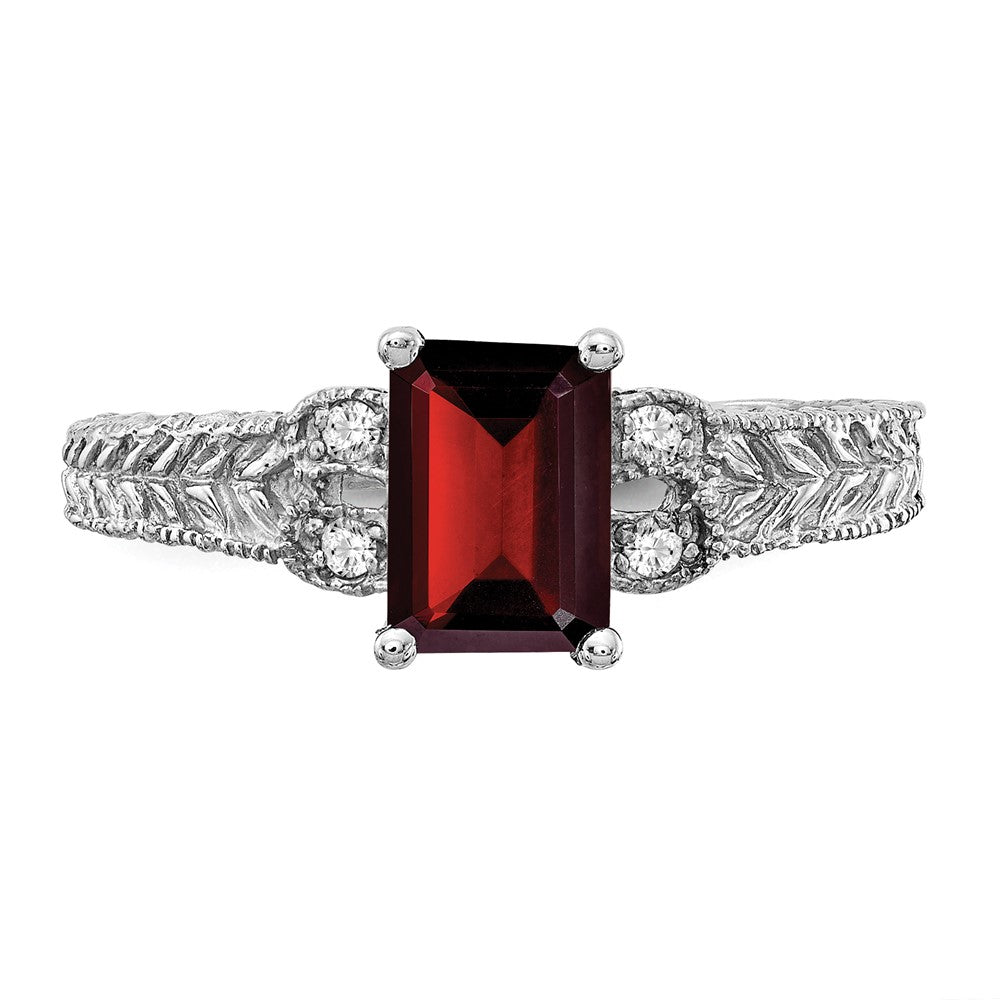 14k White Gold 7x5mm Emerald Cut Garnet VS Diamond ring
