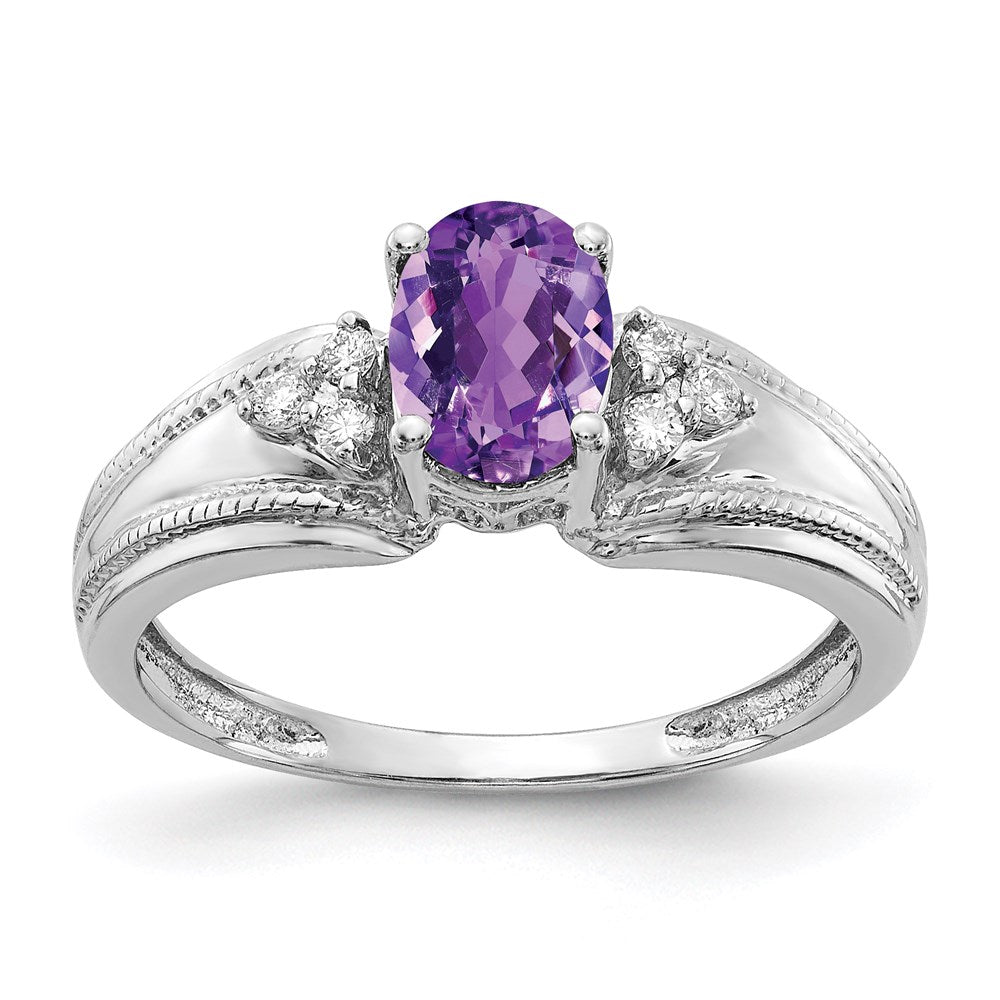 14k White Gold 7x5mm Oval Amethyst A Real Diamond ring