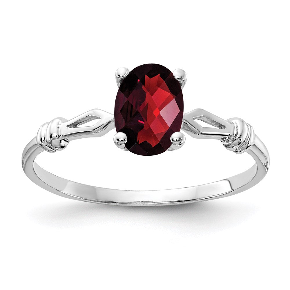 14k White Gold 7x5mm Oval Garnet Checker ring