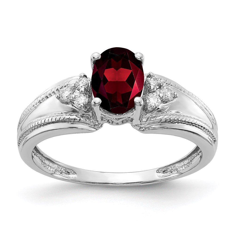 14k White Gold 7x5mm Oval Garnet A Real Diamond ring