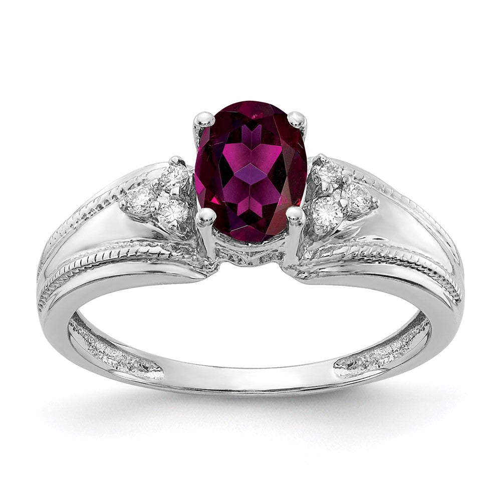 14k White Gold 7x5mm Oval Rhodolite Garnet AAA Diamond ring