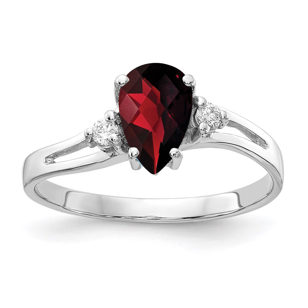 14k White Gold 7x5mm Pear Garnet Checker A Real Diamond ring