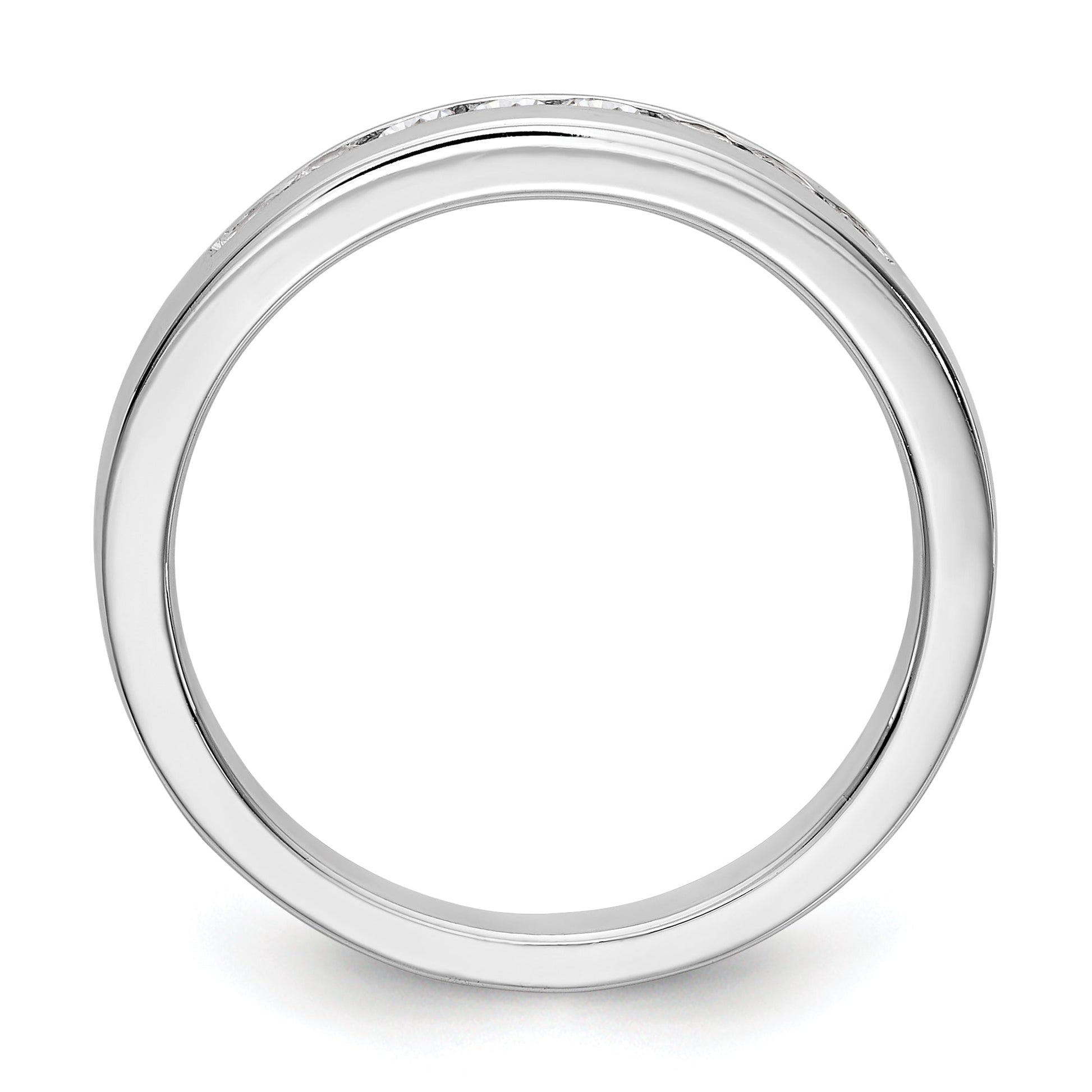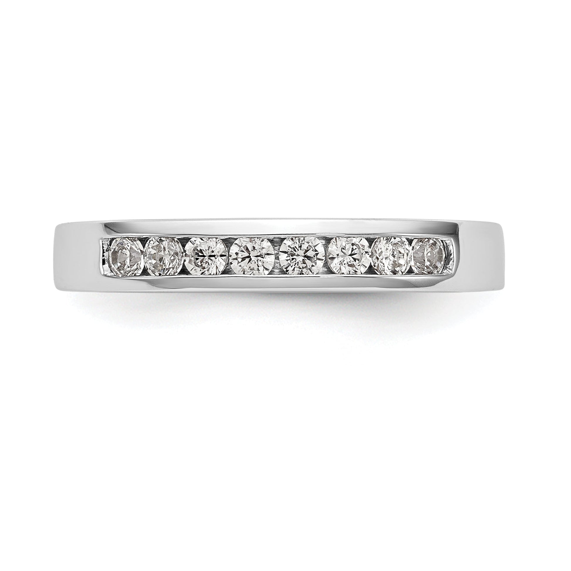 The 14K White Gold 8-Stone 1/3 Carat Round Diamond Channel Band is a stunning ring designed for those who cherish true elegance. Crafted from pure 14K gold with a polished finish, this ring features eight sparkling white diamonds securely set in a sleek channel setting. Each stone boasts a round cut, totaling 0.039 carats, and offers clarity for a radiant look. The band measures 3.1 mm wide, with a solid build that promises durability. Perfect as a wedding band or a special gift, the ring is adjustable from sizes 6 to 8, making it a versatile choice for anyone seeking sophisticated jewelry with a touch of sparkle.