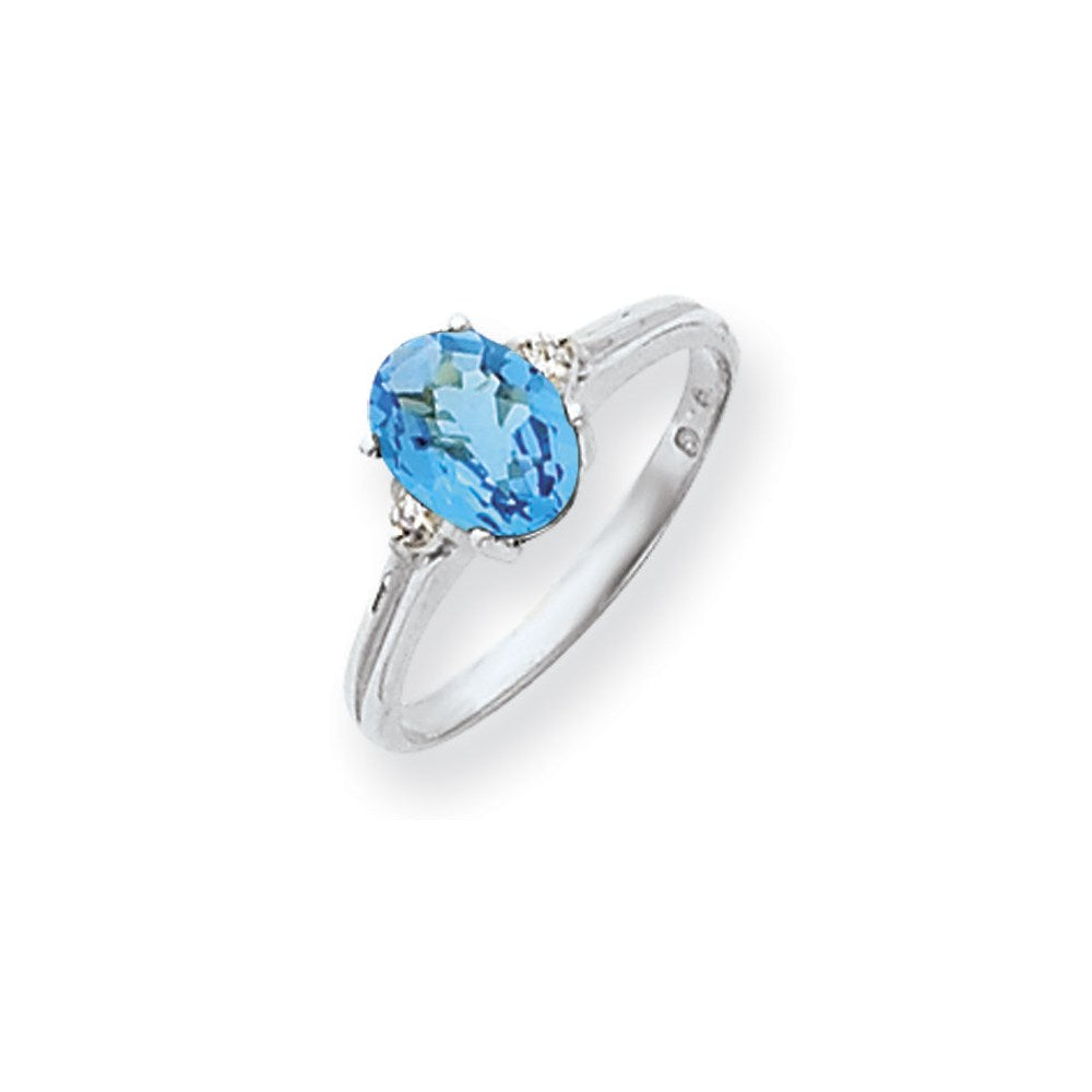 14k White Gold 8x6mm Oval Blue Topaz Checker VS Diamond ring