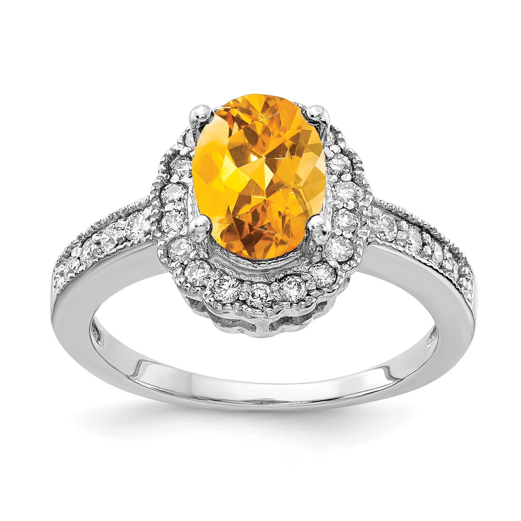 14k White Gold 8x6mm Oval Citrine Checker AA Diamond ring