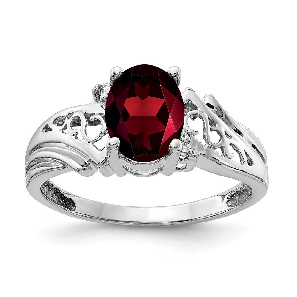 14k White Gold 8x6mm Oval Garnet AA Diamond ring