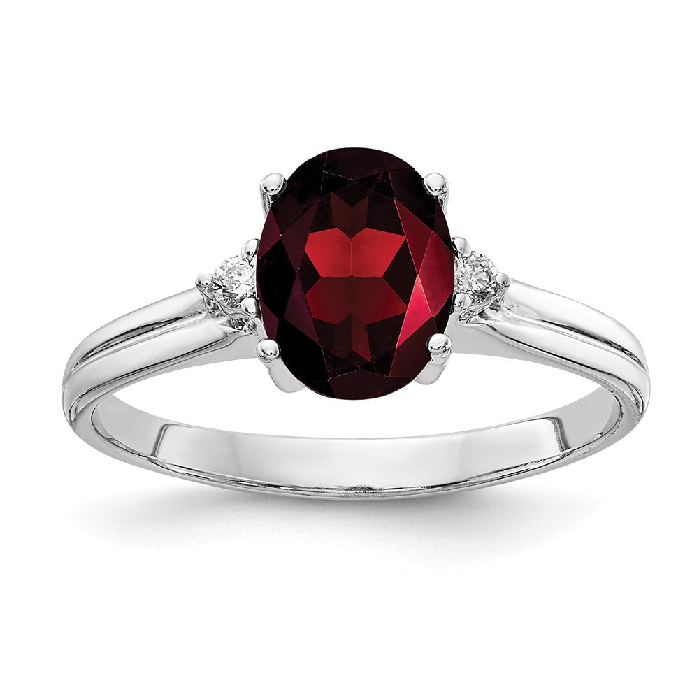 14k White Gold 8x6mm Oval Garnet AAA Diamond ring