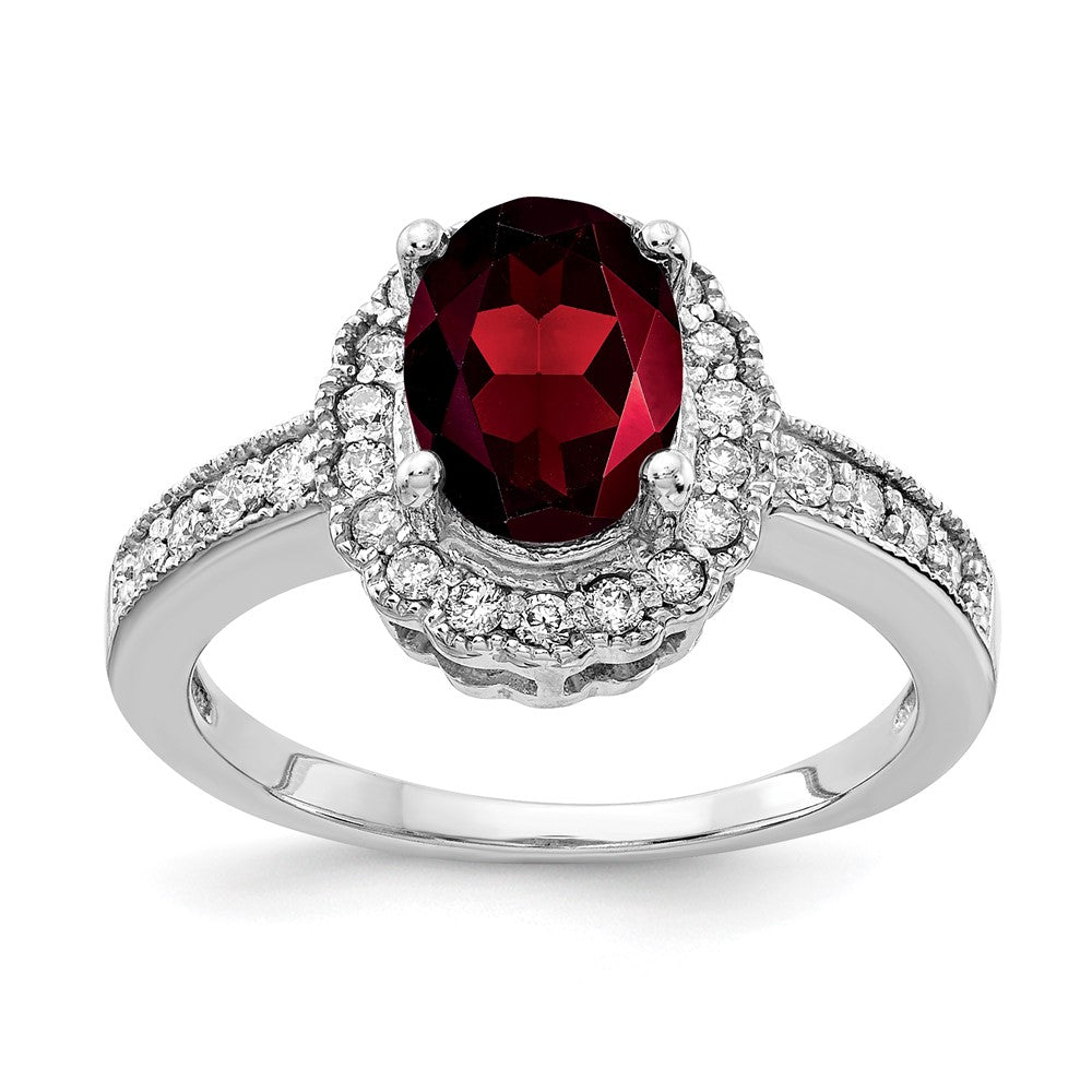 14k White Gold 8x6mm Oval Garnet Checker A Real Diamond ring