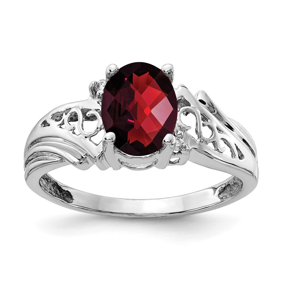 14k White Gold 8x6mm Oval Garnet Checker AAA Diamond ring
