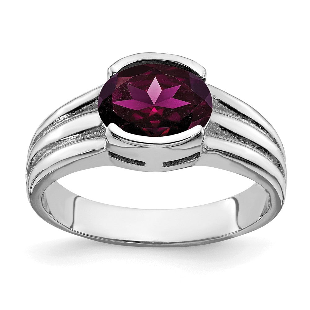 14k White Gold 8x6mm Oval Rhodolite Garnet ring