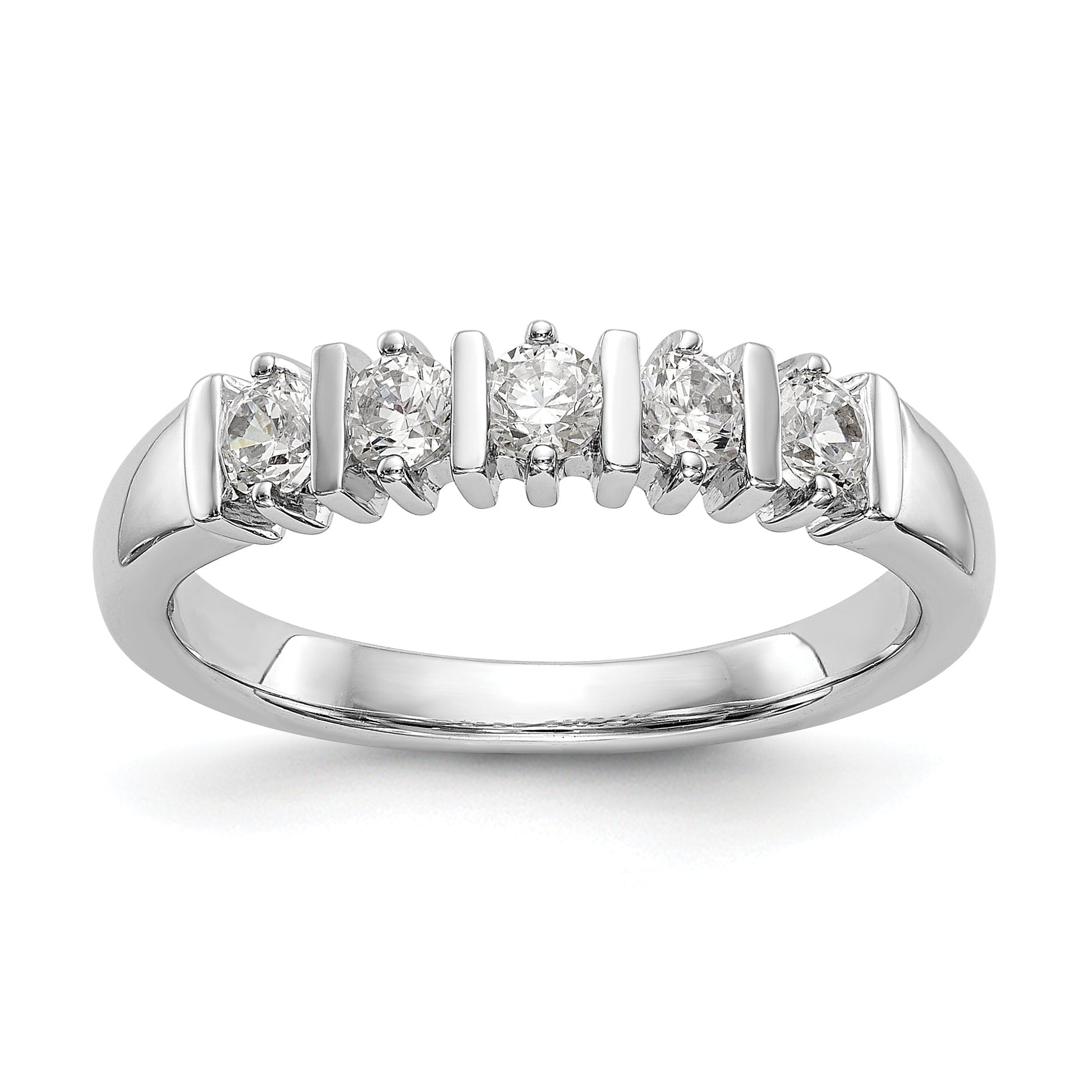 14k White Gold AA Diamond 5 Stone Ring