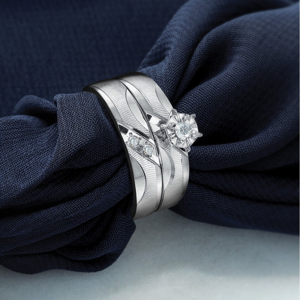Check out the 14K White Gold Aa Quality 1/20 Carat Diamond Trio Mens Wedding Band. Crafted in shiny 14K white gold, this ring has four bright diamonds that add a touch of class. The diamonds are round-cut, clear, and sparkle with a 1.3 mm size. Rhodium plating keeps the shine bright and resists tarnish. Lightweight and durable, this wedding band combines style and strength perfect for any groom. With its natural stones and elegant design, the 14K White Gold Aa Quality 1/20 Carat Diamond Trio Mens Wedding Band makes a bold statement of love and commitment.