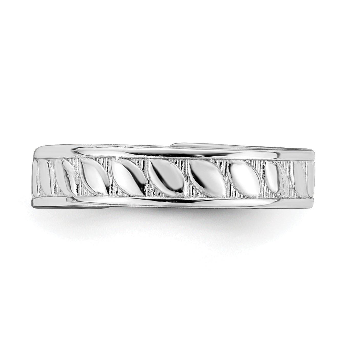 Step into style with the 14K White Gold Adjustable Leaf Engraved Design Toe Ring. Crafted from premium 14K white gold, this toe ring features a polished finish and a radiant rhodium plating. Its unique leaf engraving adds a touch of nature-inspired elegance to your look. The ring's adjustable band ensures a comfortable fit for any toe size, making it a versatile addition to your jewelry collection. Perfect for any occasion, the 14K White Gold Adjustable Leaf Engraved Design Toe Ring is a must-have accessory for those who appreciate both style and craftsmanship.