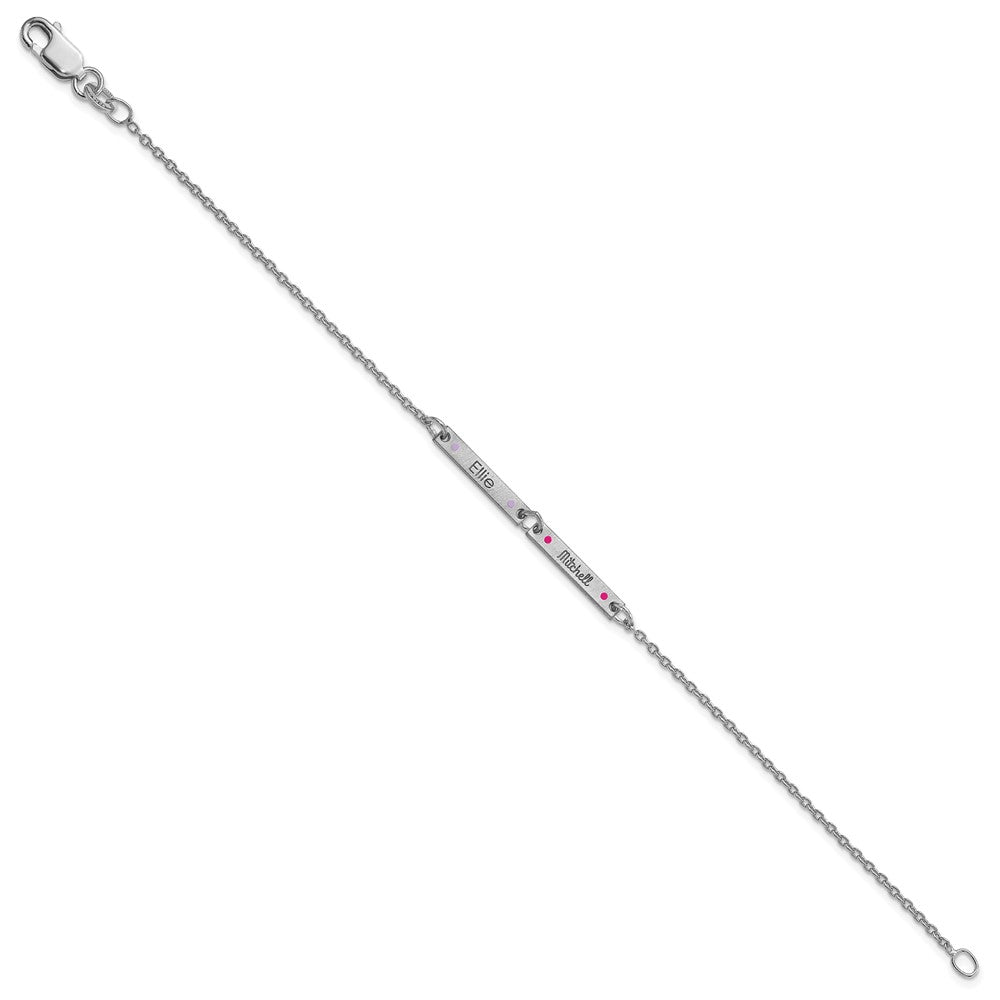 The 14K White Gold Brushed 2 Station W/Epoxy Dots Bracelet is a stylish piece perfect for women. It features a sleek white gold finish with a brushed look that adds subtle charm. The bracelet has two stations decorated with colorful epoxy dots, giving it a fun, modern vibe. Measuring 7 inches long, it fits comfortably on most wrists. The sturdy cable chain and lobster clasp ensure a secure fit. This personalized jewelry piece blends simplicity with a pop of color, making it a great choice for everyday wear or special occasions. The 14K white gold makes it a timeless addition to any collection.