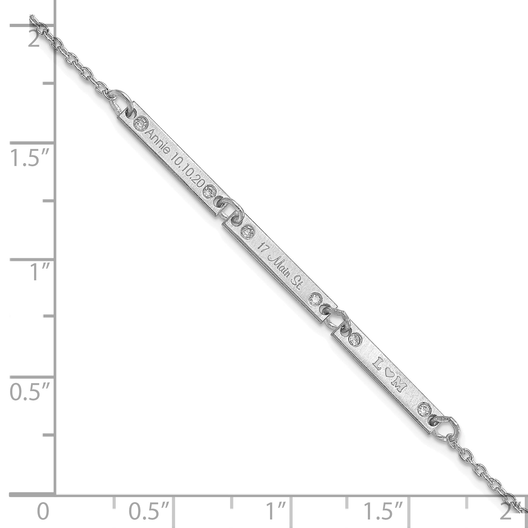Meet the 14K White Gold Brushed 3 Station W/Diamonds Bracelet, a sleek piece that adds a touch of sparkle to your style. Crafted from high-quality 14K gold with a brushed finish, this bracelet features three stations adorned with sparkling white diamonds set in a bezel style. Each diamond measures 1.5 mm, offering just the right amount of shimmer. The 7-inch cable chain is durable and stylish, finished with a lobster clasp for easy wear. Perfect for women seeking a personalized piece, the 14K White Gold Brushed 3 Station W/Diamonds Bracelet combines beauty and craftsmanship that lasts.
