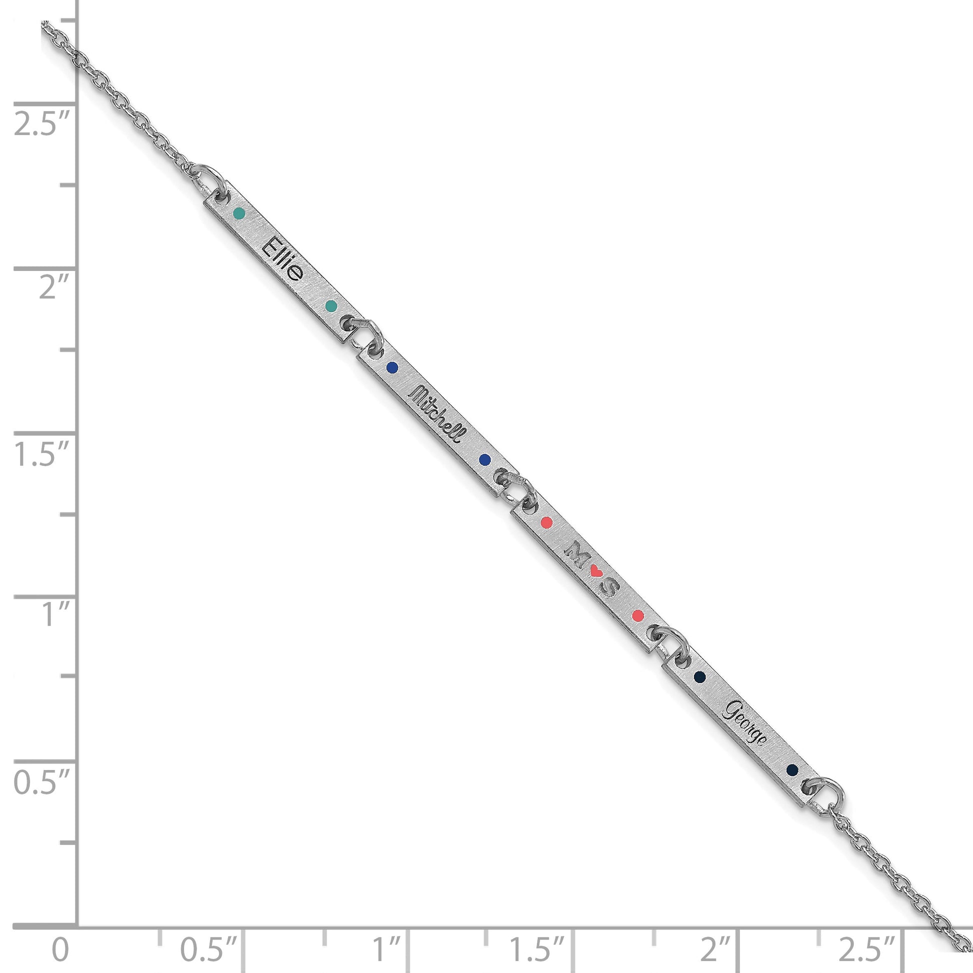 Discover the 14K White Gold Brushed 4 Station W/Epoxy Dots Bracelet, a perfect piece for modern women. This bracelet features a sleek, brushed finish on genuine 14K white gold, giving it a refined look. Four stylish stations with vibrant epoxy dots add a pop of color and detail. The 7-inch cable chain with a secure lobster clasp offers a comfortable fit. Designed for a personalized touch, the flat profile and minimal charm size make it ideal for daily wear. The 14K White Gold Brushed 4 Station W/Epoxy Dots Bracelet combines quality and style effortlessly.