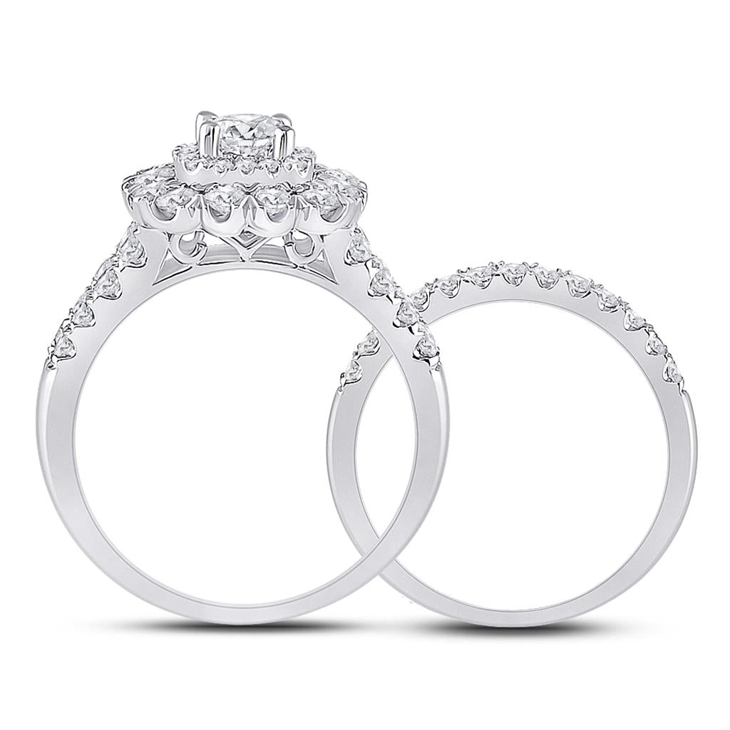 14k White Gold Cushion Diamond Bridal Wedding Ring Set 1-7/8 Cttw (Certified)