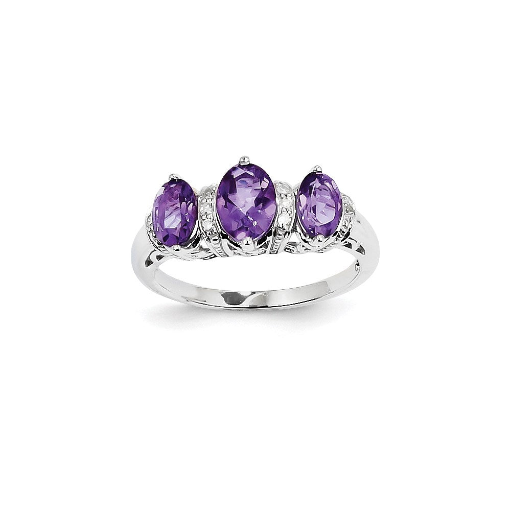 14K White Gold Real Diamond and Amethyst Oval Ring