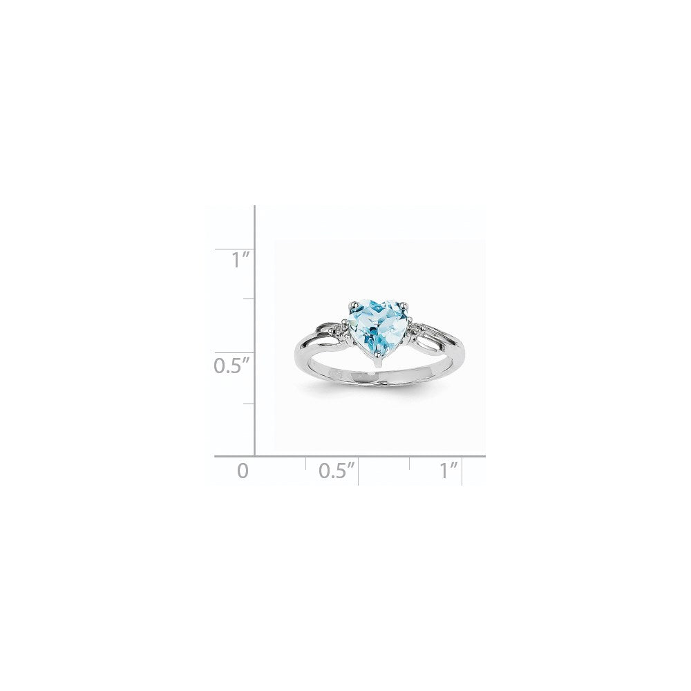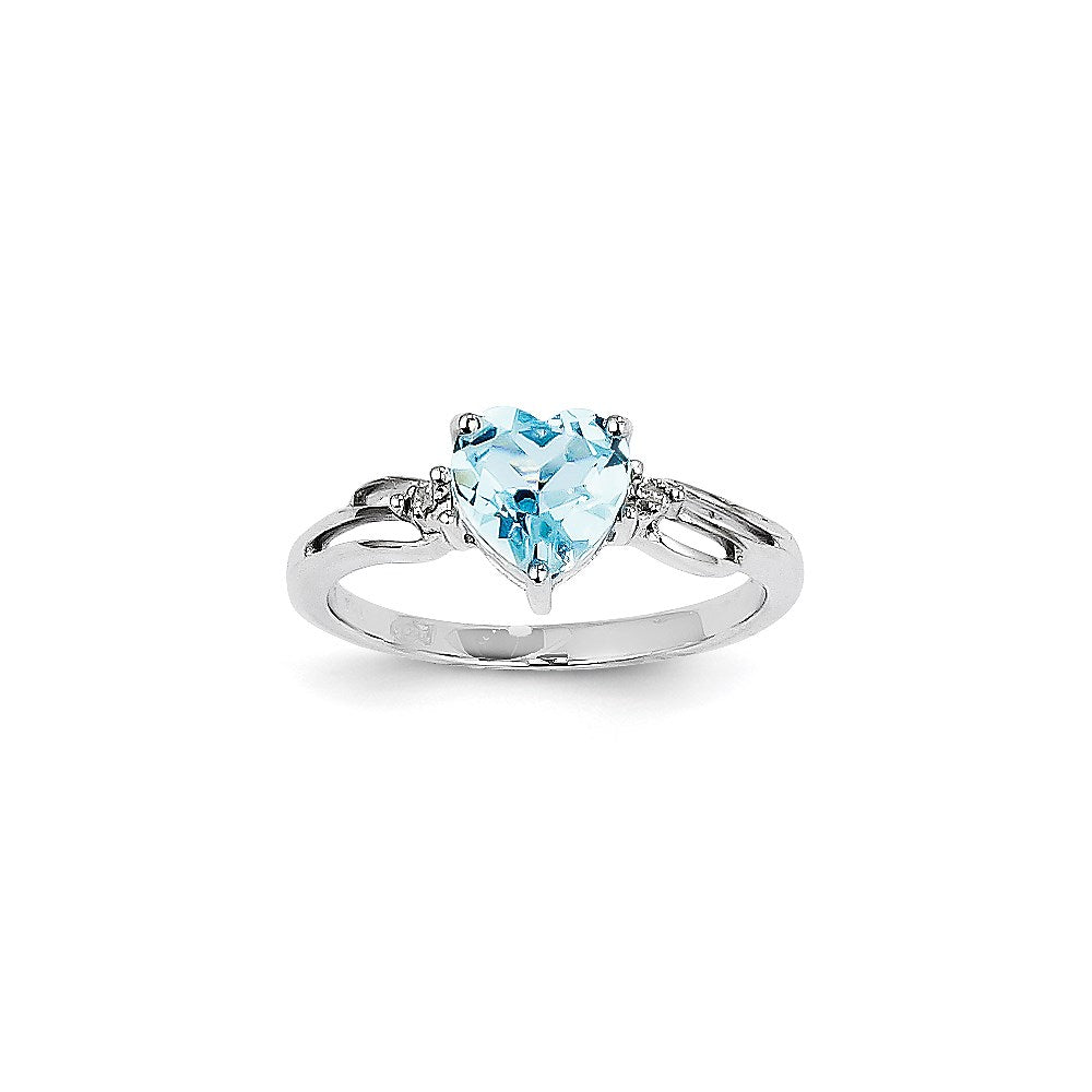 14k White Gold Real Diamond and Blue Topaz Heart Ring