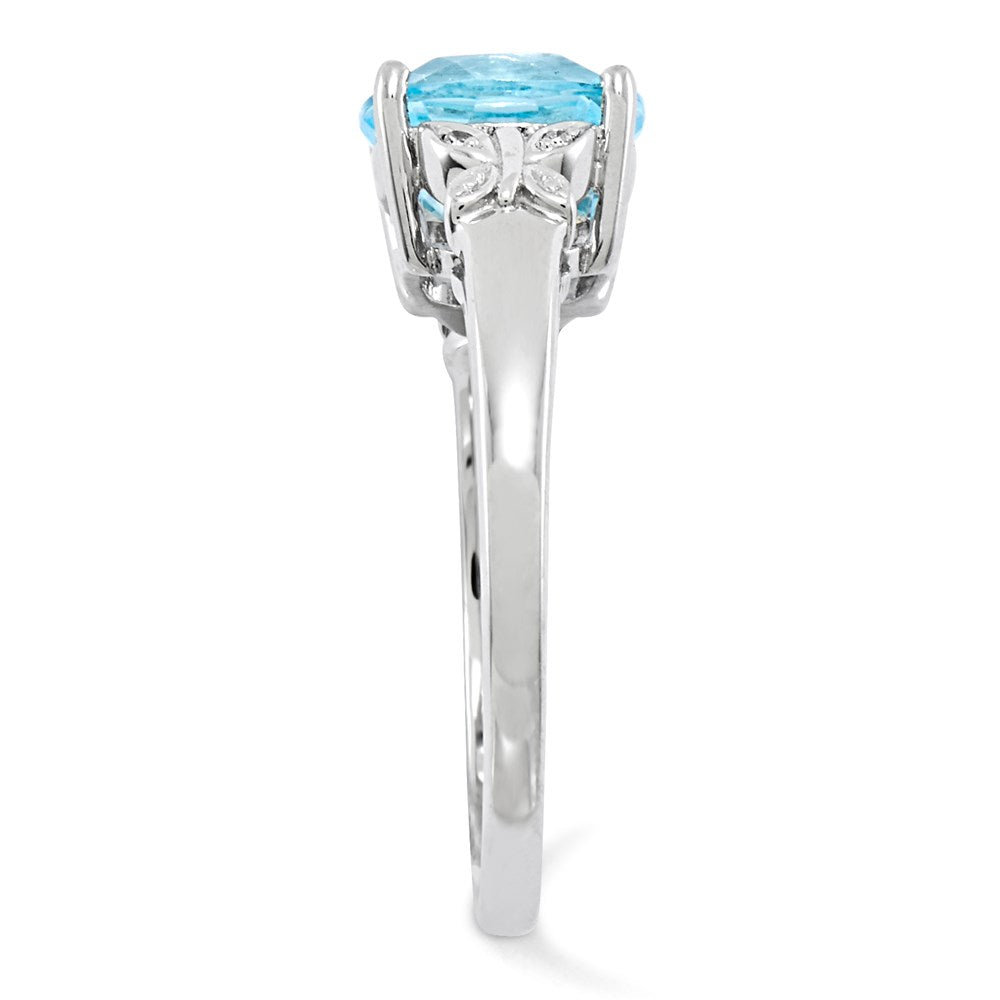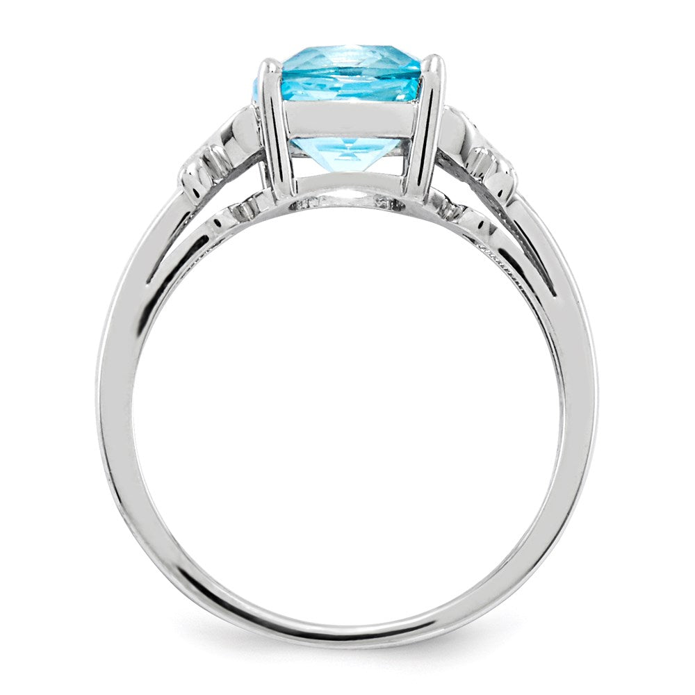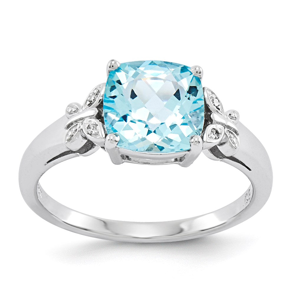 14k White Gold Real Diamond and Blue Topaz Square Ring