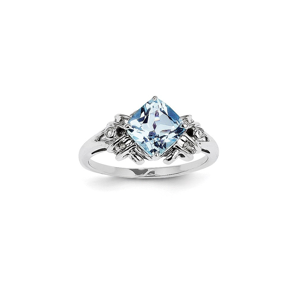 14k White Gold Real Diamond and Blue Topaz Square Ring