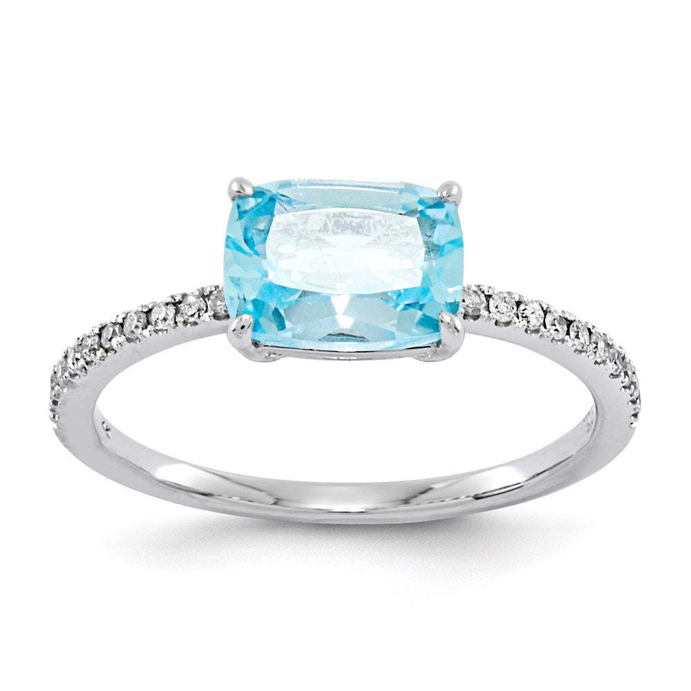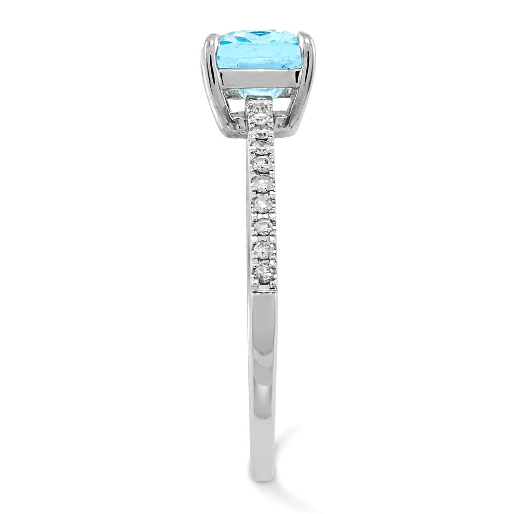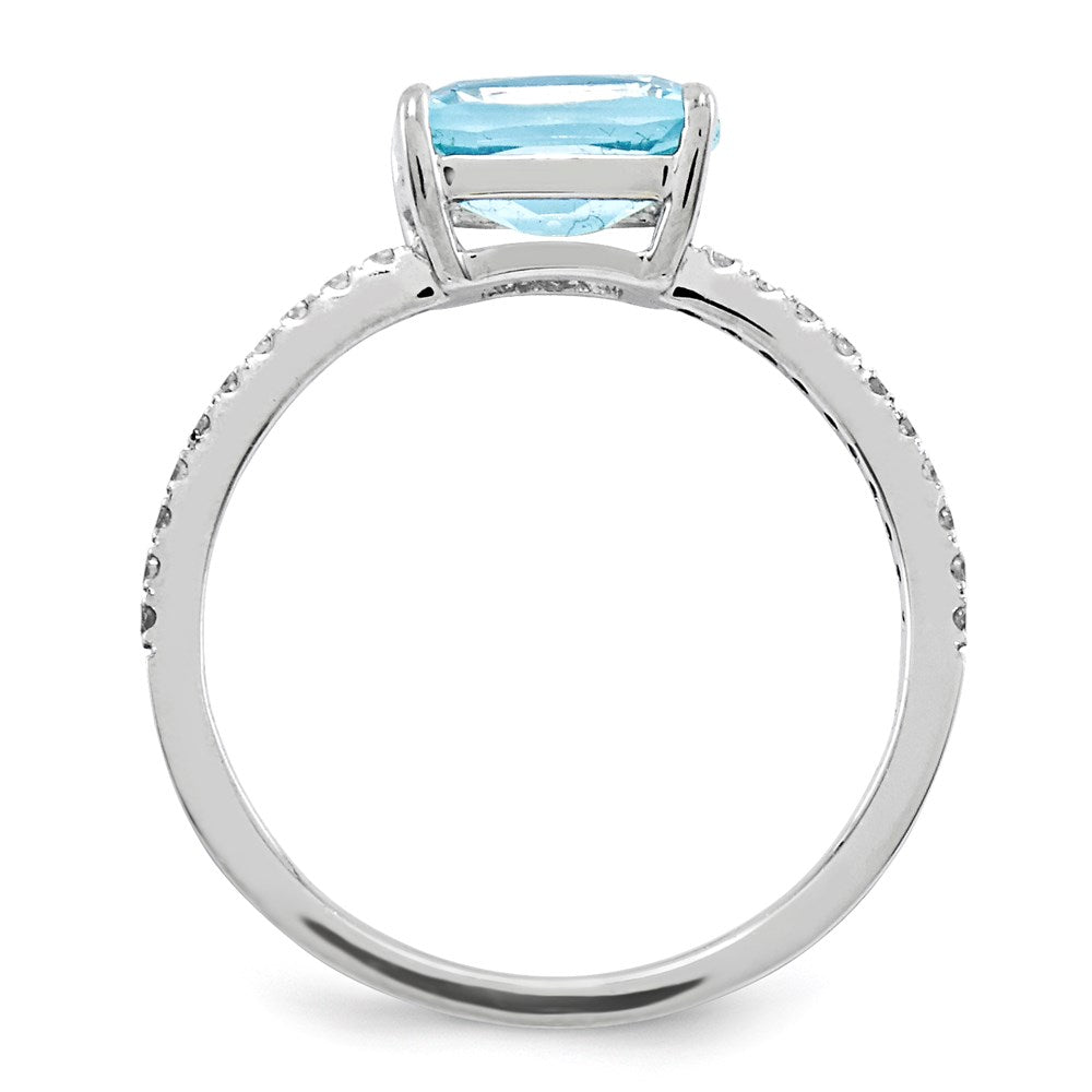 14k White Gold Real Diamond and Blue Topaz Square Ring