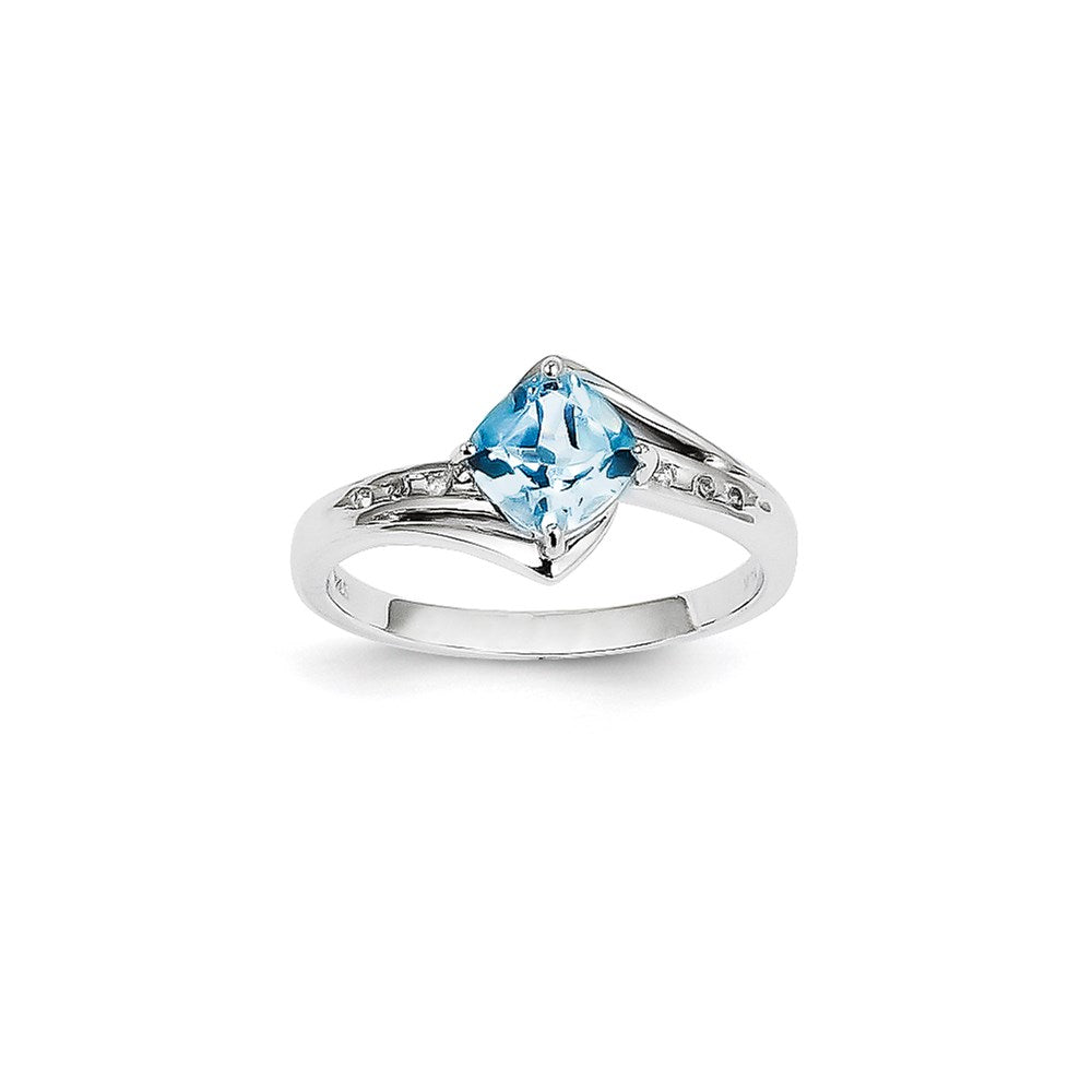 14k White Gold Real Diamond and Blue Topaz Square Ring