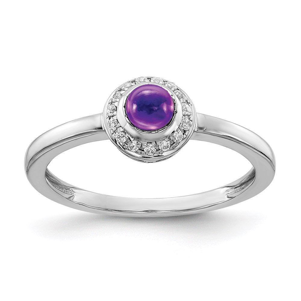 14k White Gold Real Diamond and Cabochon Amethyst Ring