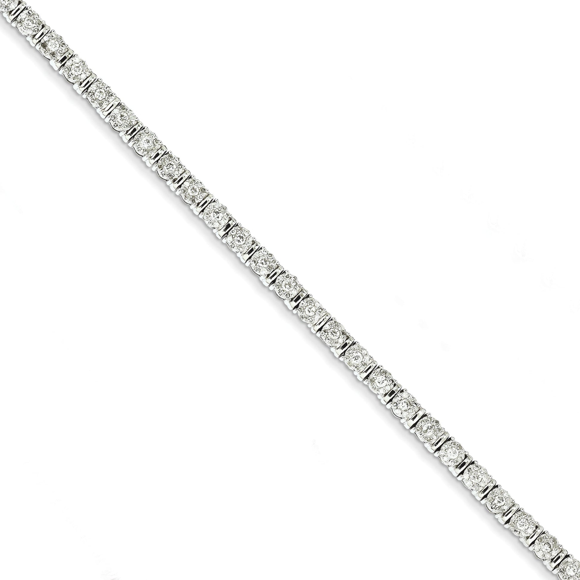 The 14K White Gold Diamond Bracelet is a perfect piece of fine jewelry that shines with elegance. It features 34 small round diamonds and 272 sparkling stones, all set in polished, rhodium-plated white gold. The bracelet measures 7 inches long with a sturdy box catch for a secure fit. Crafted with a casted process, it offers a solid feel and lasting quality. The diamonds are natural and heated for extra sparkle. Whether for a special event or an everyday wear, the 14K White Gold Diamond Bracelet adds a touch of class and style to any outfit.