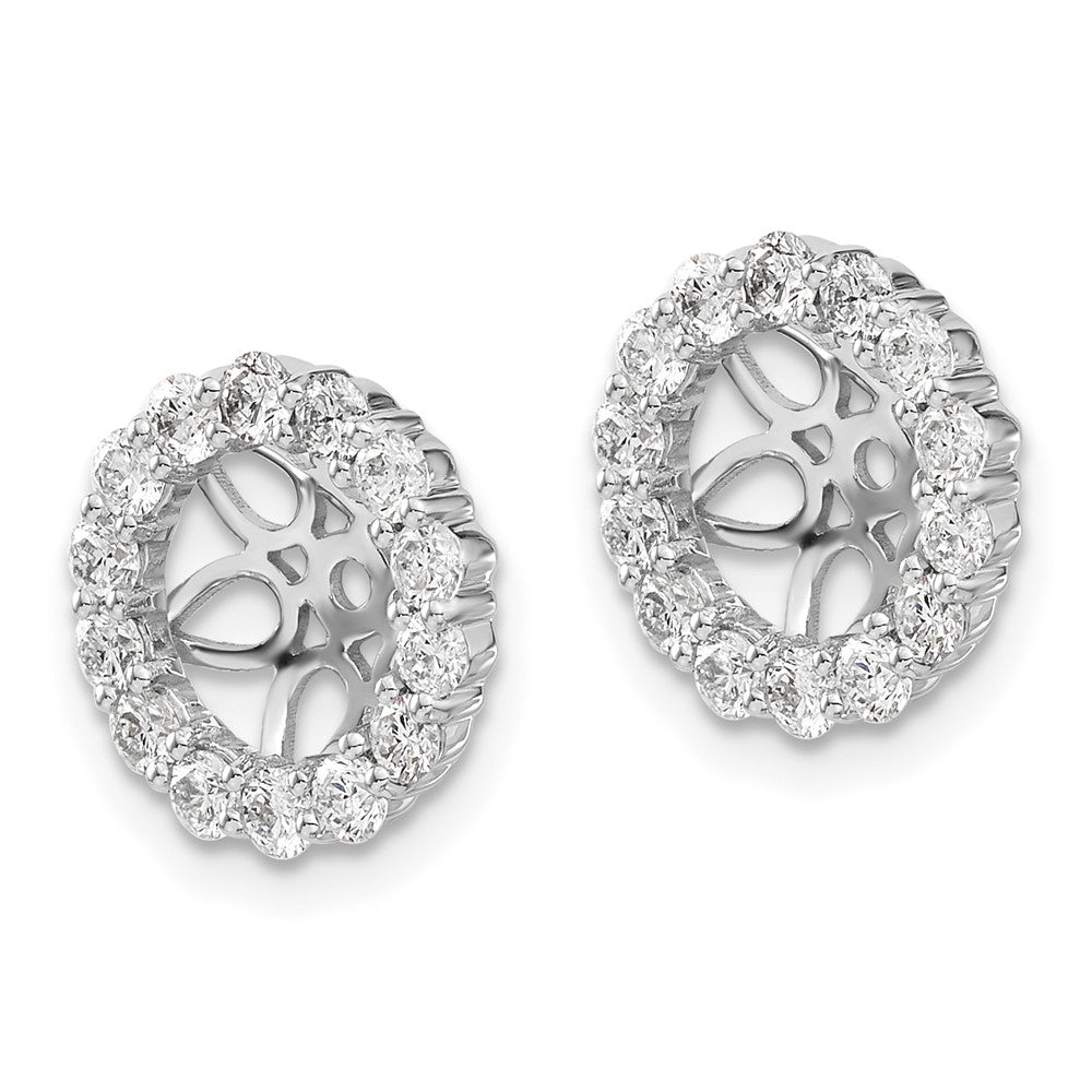 Elevate your look with the 14K White Gold Diamond Earring Jackets, a sleek piece that adds sparkle and style. Crafted from pure 14K gold and plated in rhodium, these earrings feature 28 dazzling round diamonds with a combined weight of 0.0347 carats. The bright white stones are clear and scintillate with a touch of natural brilliance. Designed to enhance your earrings, these jackets fit perfectly with an opening of 7.25 mm. They measure 12 mm in length and width, making them a stylish choice for women who love a bit of bling. The 14K White Gold Diamond Earring Jackets are a must-have for any jewelry collection.