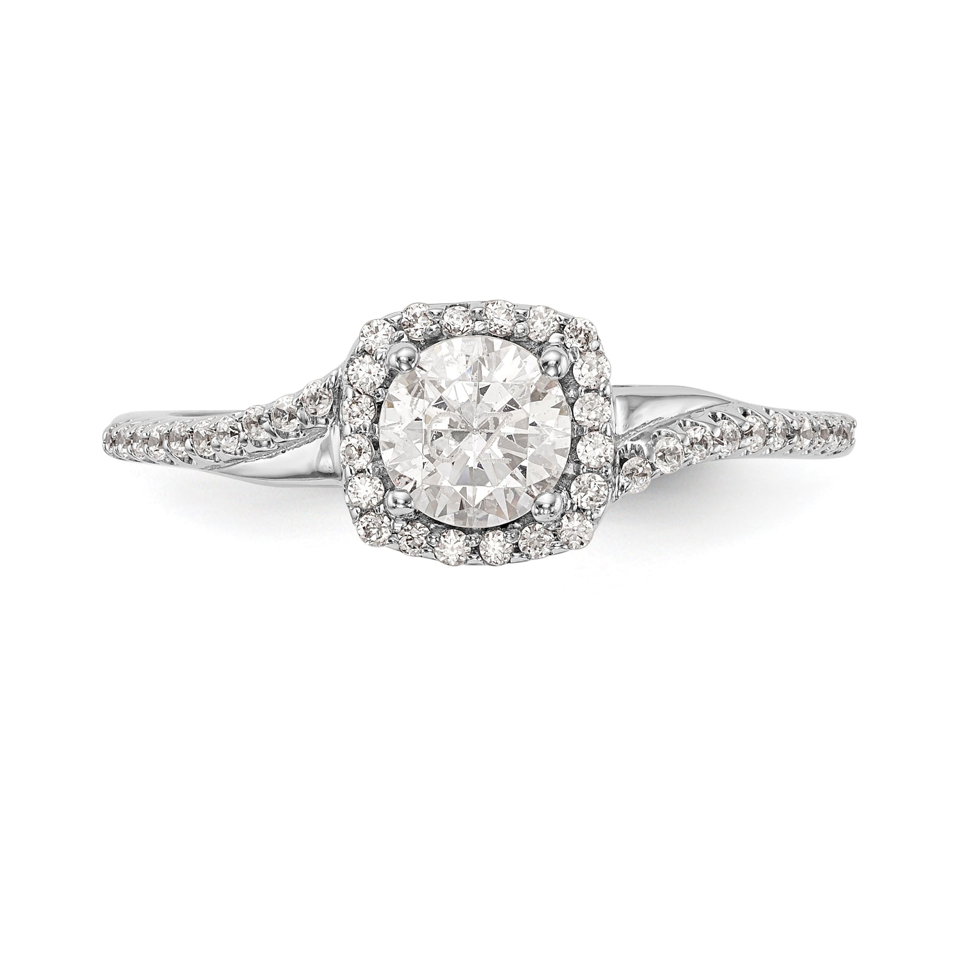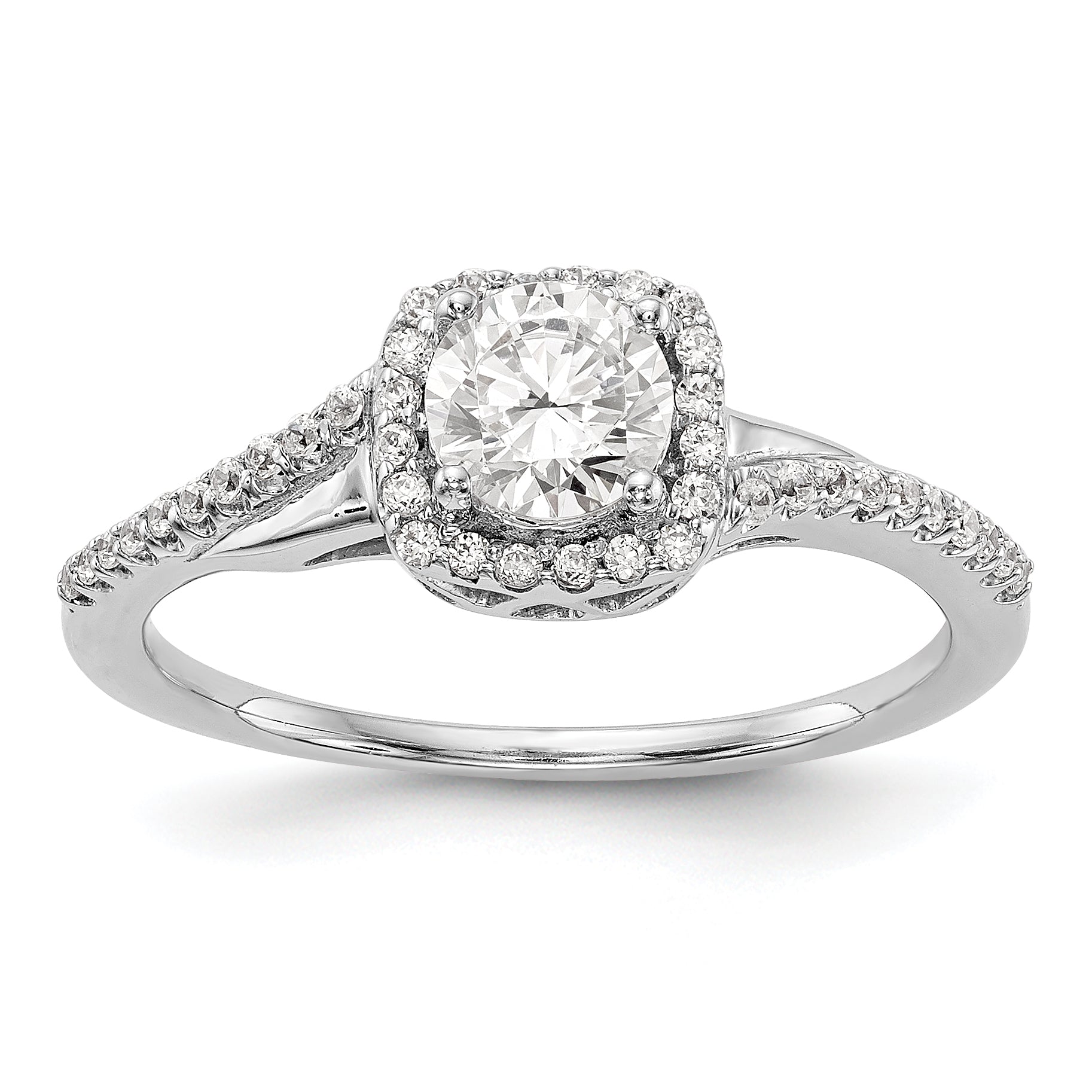 14K White Gold Simulated Diamond Cushion Halo Engagement Ring