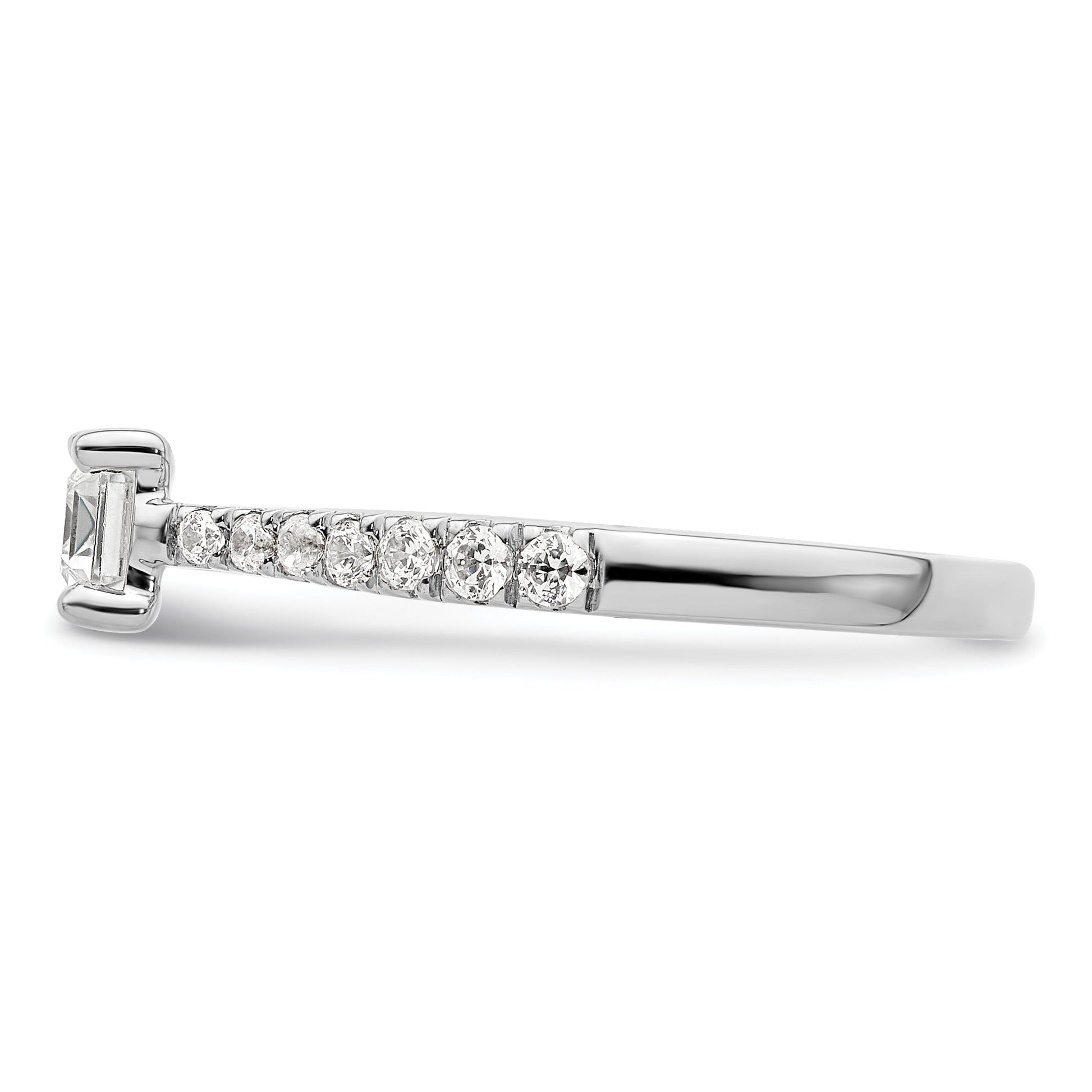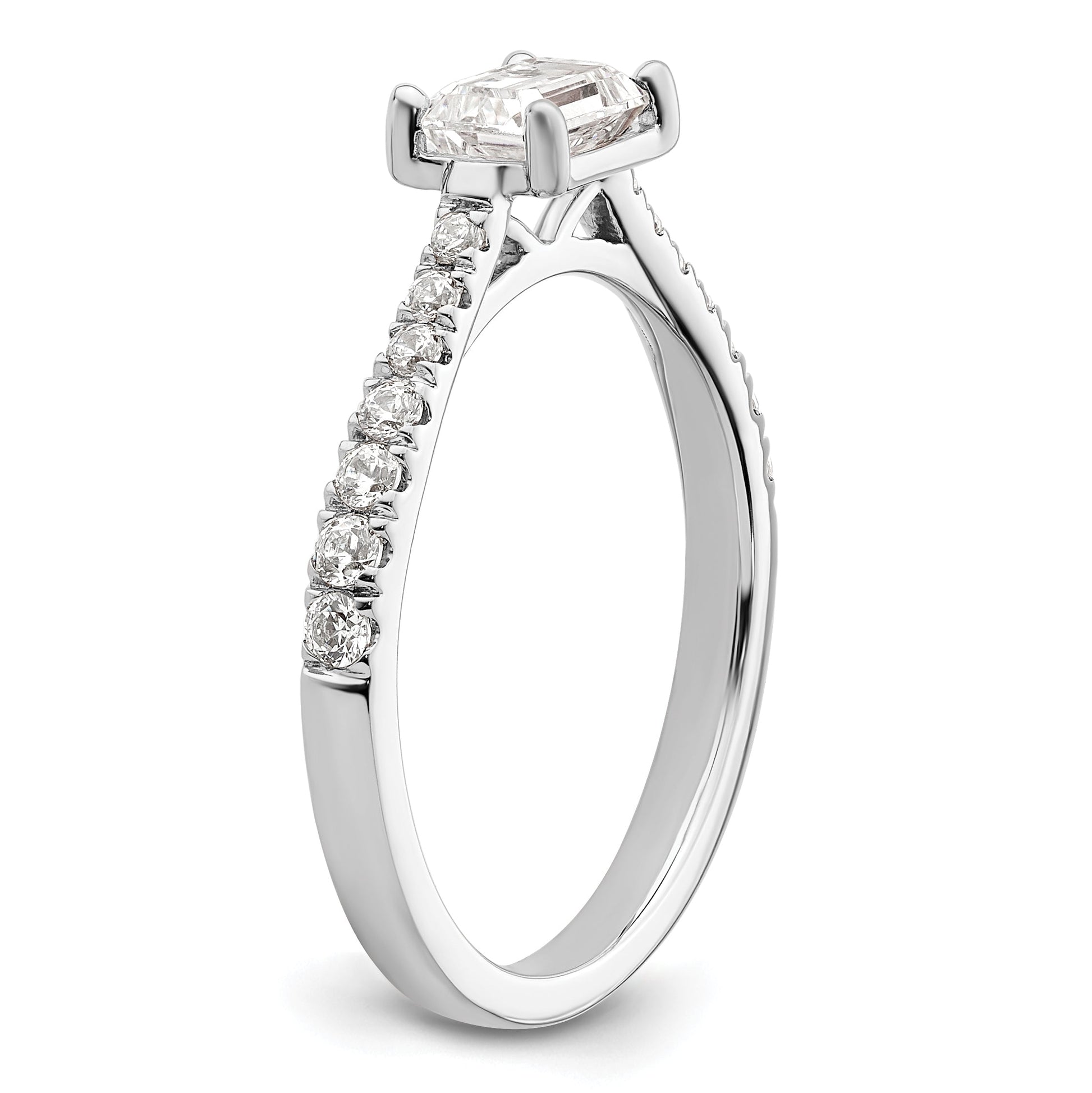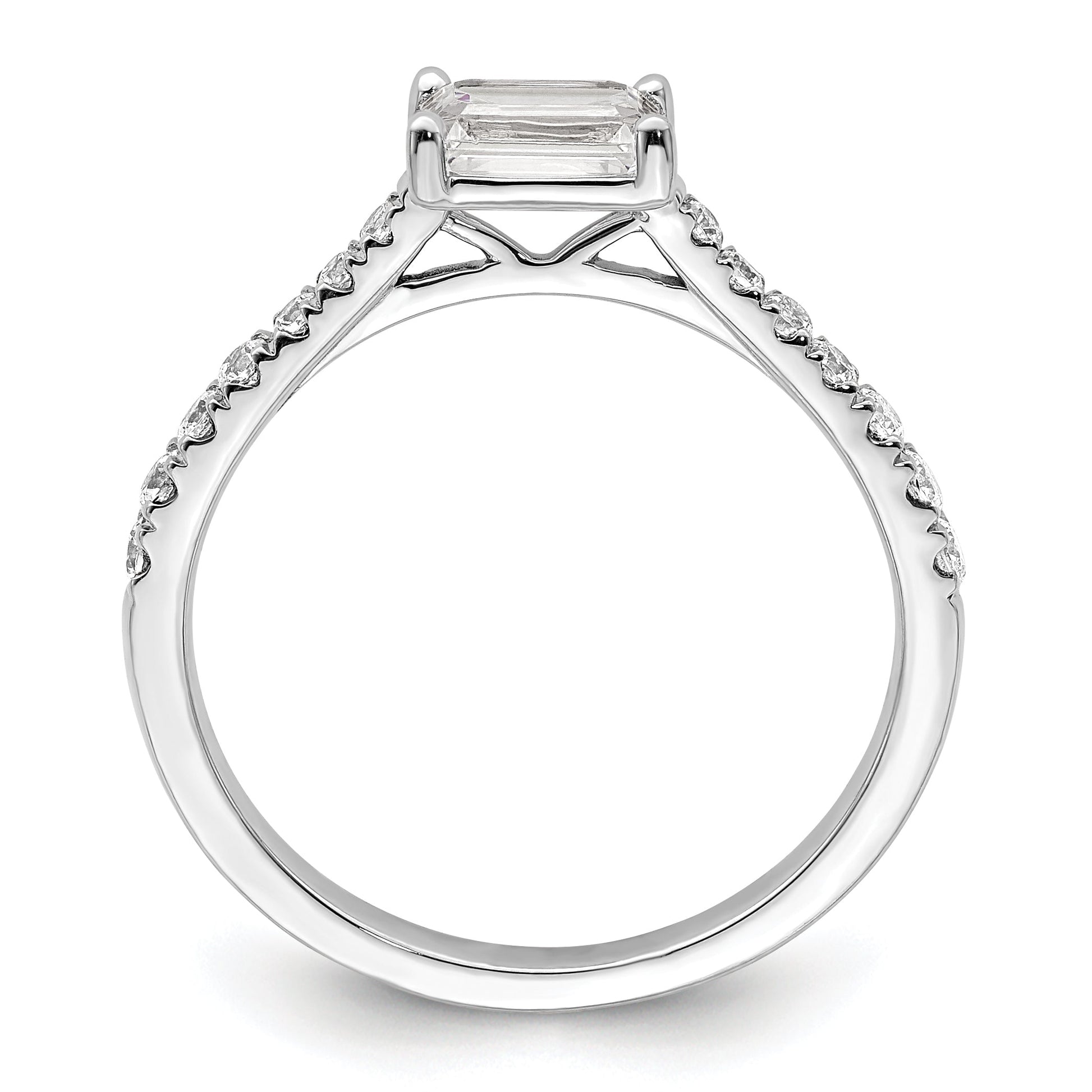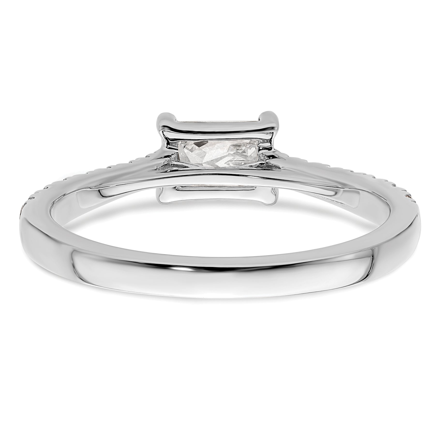 The 14K White Gold East West Semi-Mount Engagement Ring is a stunning choice for your special moment. Featuring a sleek, polished band that tapers from 1.6 to 2 mm, it offers a modern, elegant look. The ring holds a 3/4 carat emerald-cut center stone in a secure prong setting, showcasing its unique style. Decorated with 14 sparkling diamonds for extra shine, the design is both bold and refined. Crafted from solid 14K white gold with a rhodium finish, the ring is built to last; it’s also easy to size so it fits perfectly. Make your proposal unforgettable with the exquisite 14K White Gold East West Semi-Mount Engagement Ring.
