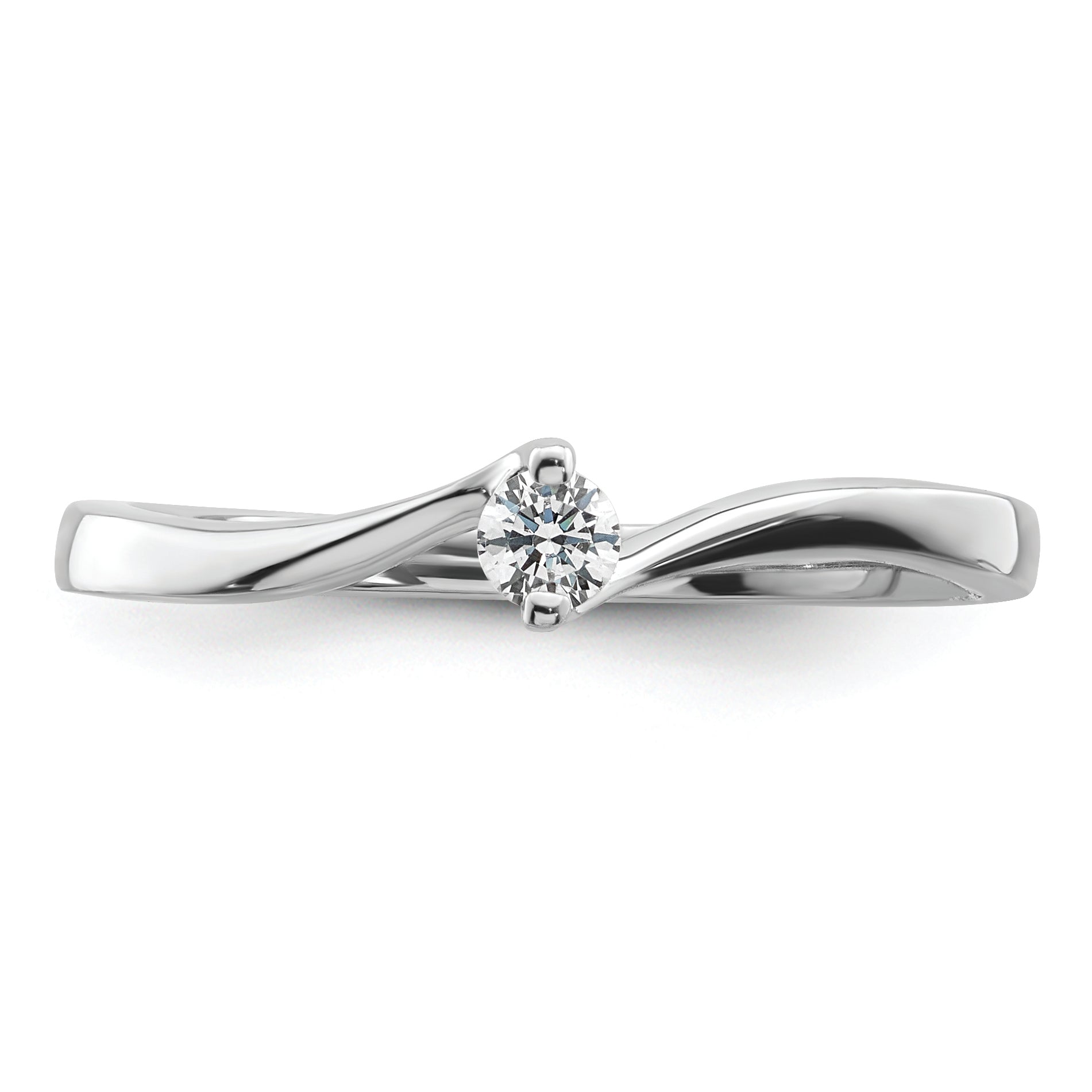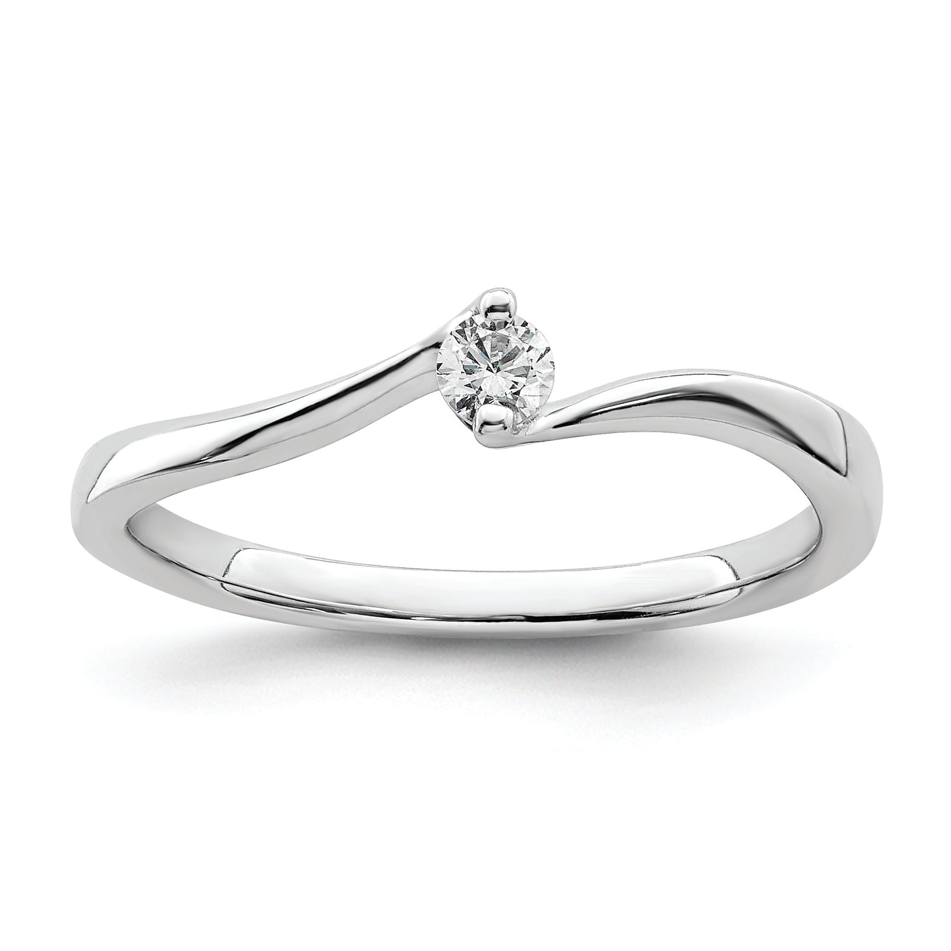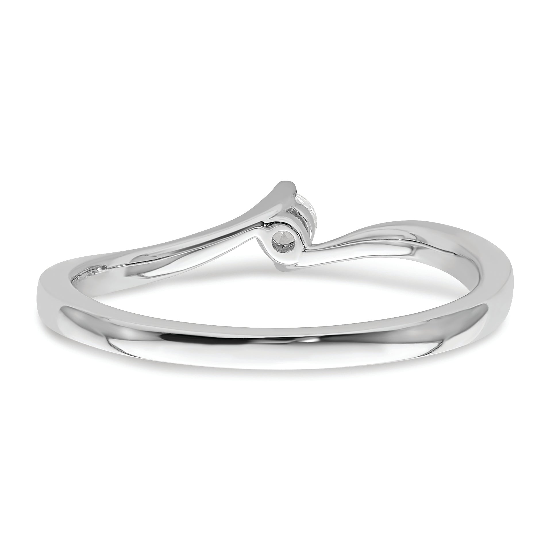 The 14K White Gold First Promise Bypass Ring is a beautiful choice for an engagement or promise ring. This piece features a sparkling 0.1-carat round diamond securely prong-set in polished, rhodium-plated white gold. The band tapers from 1.6 to 1.9 mm and is crafted with a solid, cast finish, making it both durable and elegant. Its sleek design offers a perfect fit for women, with sizes ranging from 6 to 8. The First Promise Bypass Ring combines timeless style with quality craftsmanship, making it a meaningful symbol of love.
