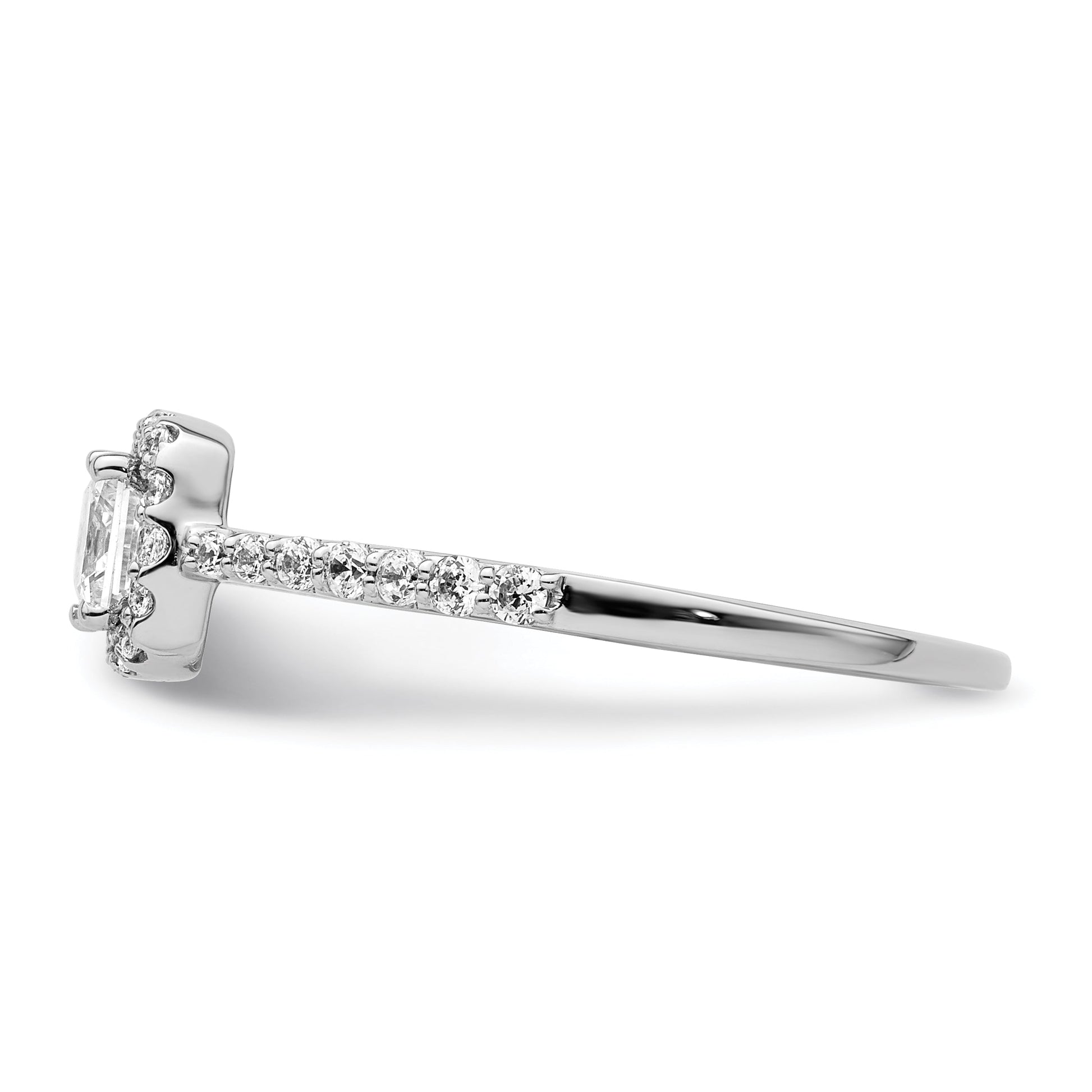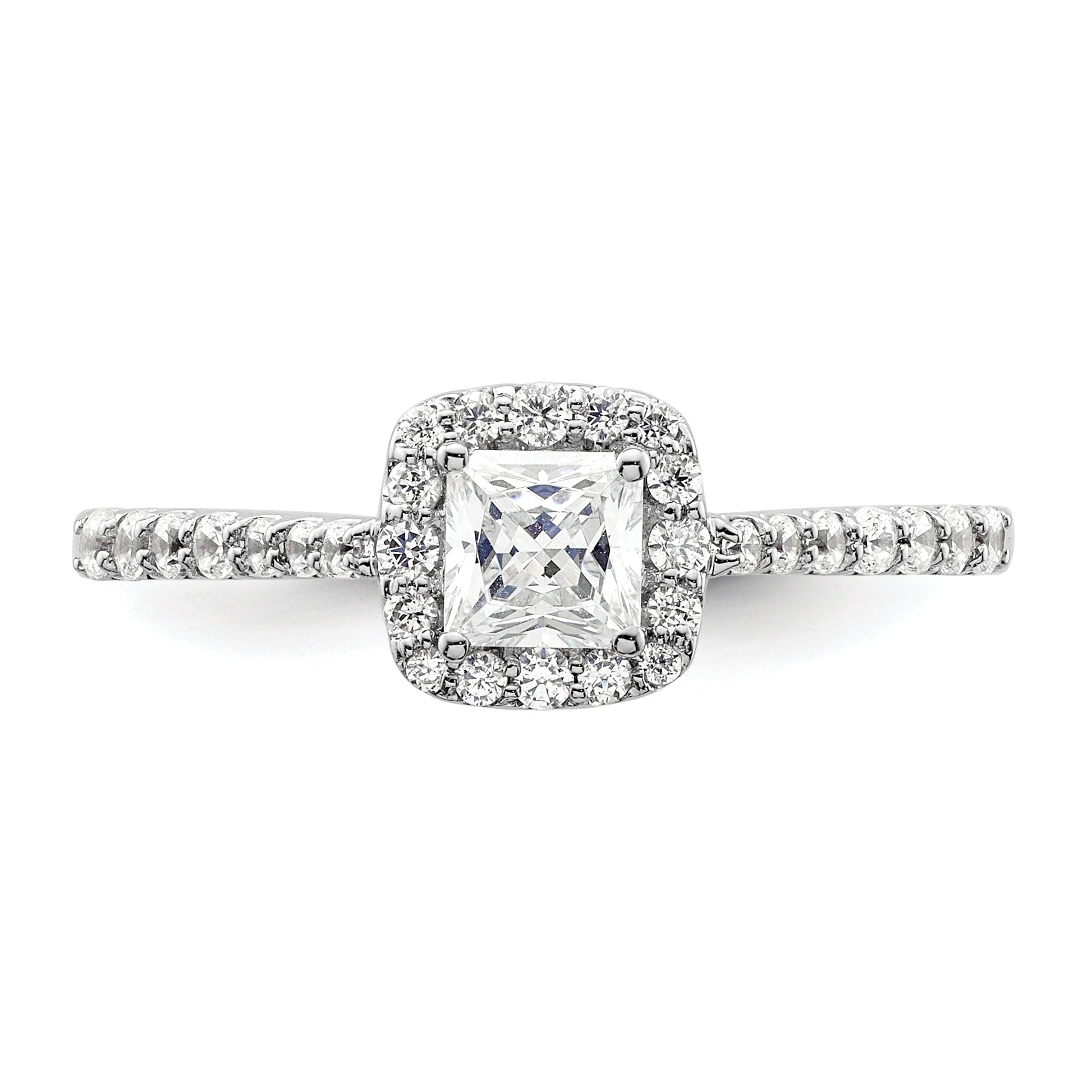 Introducing the 14K White Gold Halo Plus Engagement Ring, a stunning piece designed to make your moment special. This ring features a 0.5-carat princess-cut center stone, set securely in a sleek prong setting. Surrounding the center are smaller diamonds that add extra sparkle and brilliance. Crafted from polished 14K white gold, the ring has a slim band that measures just 1.4 mm wide, combining elegance with comfort. The Halo Plus engagement ring is crafted with natural stones and a solid build, making it perfect for those seeking a classic yet eye-catching piece.