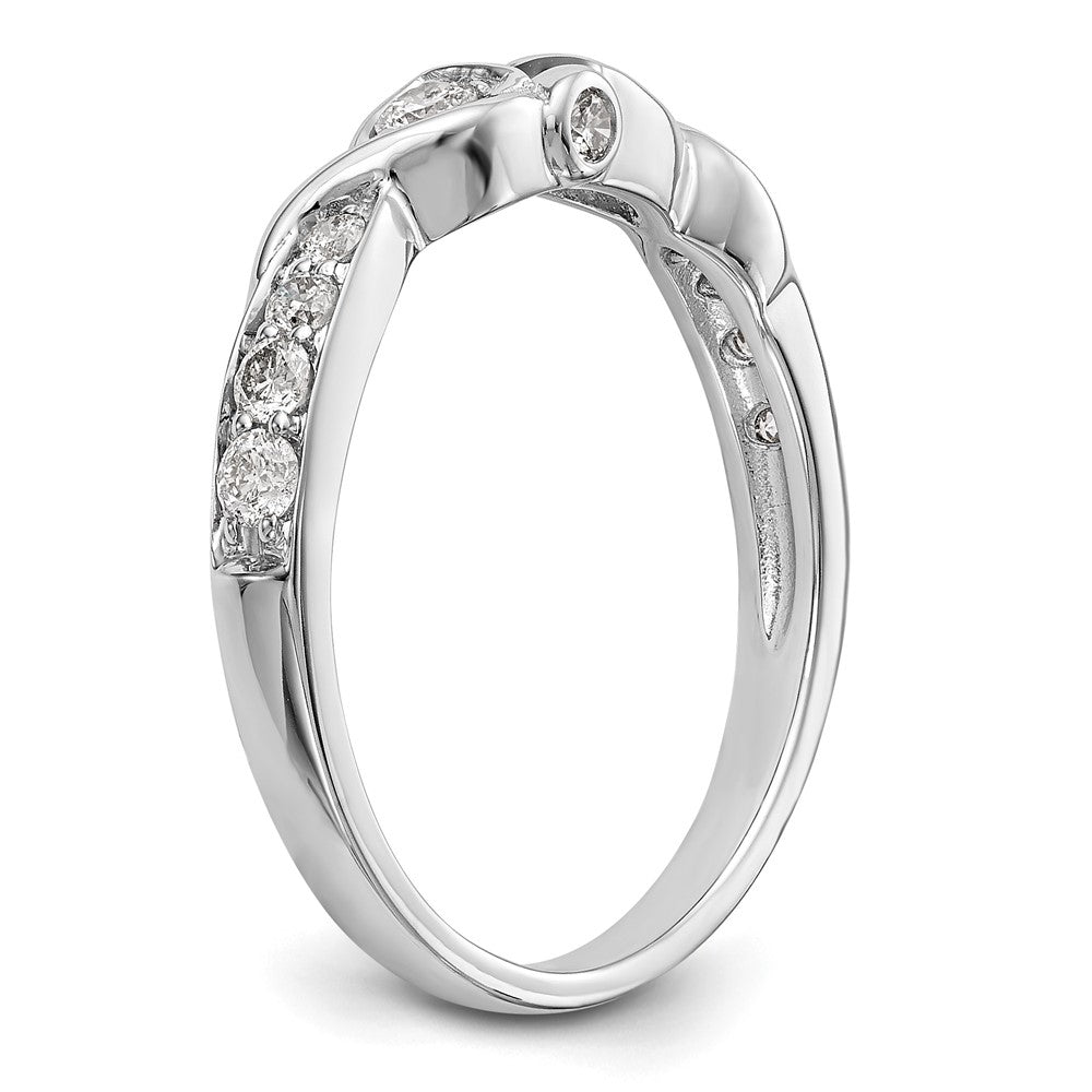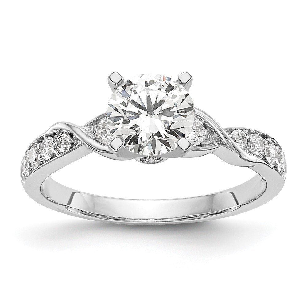 Introducing the 14K White Gold Lab Grown Diamond VS/SI FGH Peg Set Semi-Mount Engagement Ring, an enchanting blend of modernity and elegance. Crafted in lustrous 14K white gold, this semi-mount ring allows you to select your own center stone while showcasing an array of sparkling lab-grown diamonds. These stones, ranked VS/SI in clarity, emit a radiant F-G-H color grade shimmer. The peg setting accentuates each round stone, enhancing their brilliance. Rhodium plating adds a brilliant sheen, ensuring the ring dazzles from every angle. Choose the 14K White Gold Lab Grown Diamond VS/SI FGH Peg Set, for an engagement ring tailored to your love story.