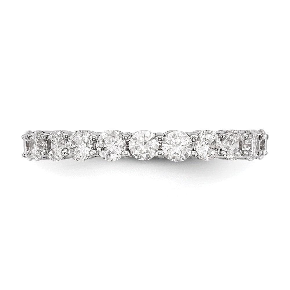 The 14K White Gold Lab Grown Diamond 11-Stone Band Ring is a luxurious piece crafted with precision. This elegant band features 11 VVS/SI+ clarity diamonds, each boasting a dazzling G+ color. These lab-grown diamonds sit beautifully against a backdrop of polished 14K white gold, enhanced with a rhodium plating for extra brilliance. It's a perfect blend of modern technology and timeless style, offering an eco-friendly and stunning alternative for diamond lovers. The 14K White Gold Lab Grown Diamond 11-Stone Band Ring is the ideal choice for those who value both elegance and sustainability.
