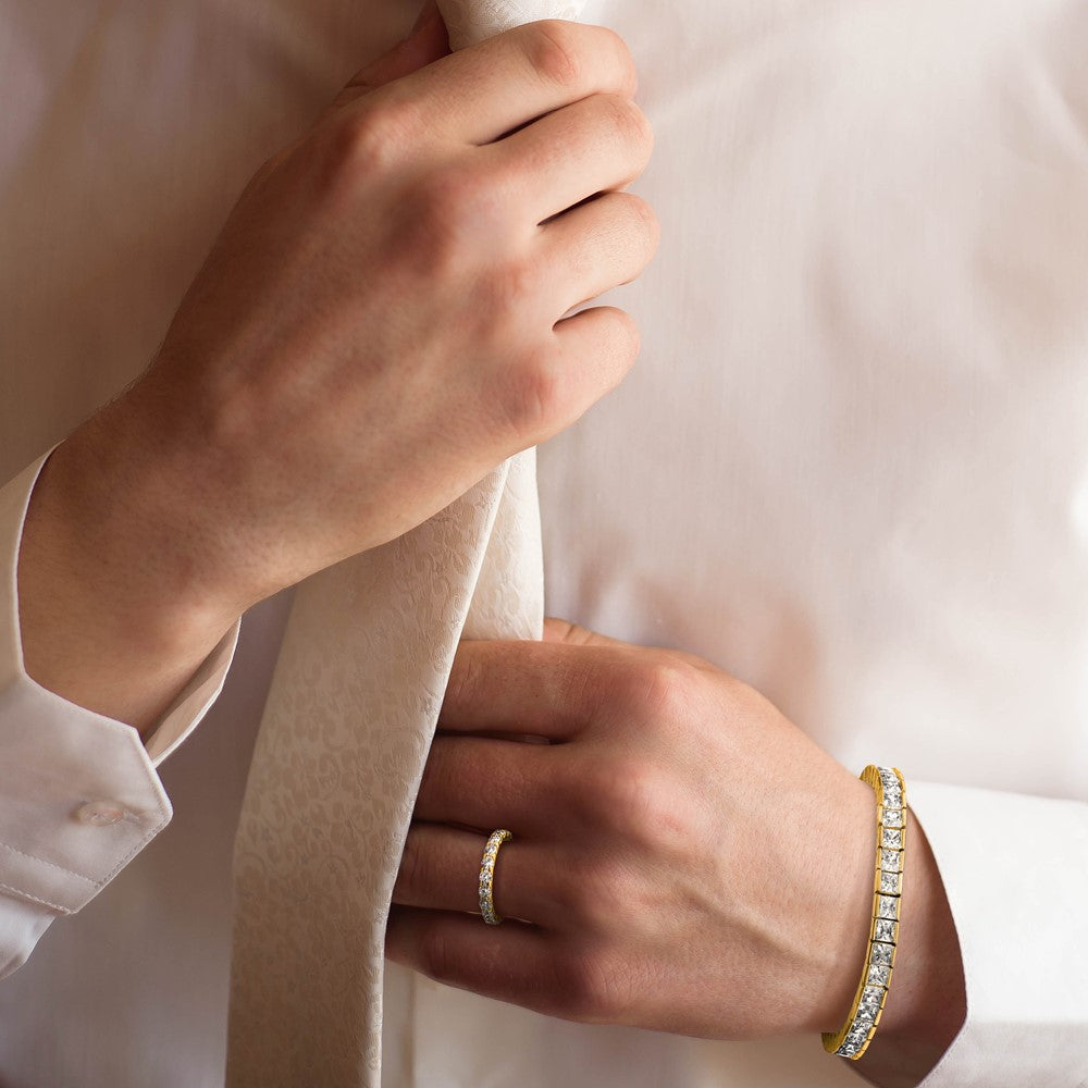 The 14K White Gold Lab Grown Diamond Vs/Si+ G+ Princess Tennis Bracelet offers a sleek and modern look for any jewelry lover. Crafted with durable 14K white gold and accented by dazzling lab-grown diamonds, it combines elegance with sustainability. The stones feature VS/SI+ clarity, ensuring they shine brightly and look stunning on your wrist. The rhodium plating gives it a polished, long-lasting finish, while the princess cut adds a touch of sophistication. Perfect for both casual and formal wear, the 14K White Gold Lab Grown Diamond Vs/Si+ G+ Princess Tennis Bracelet is a stylish choice that stands out.