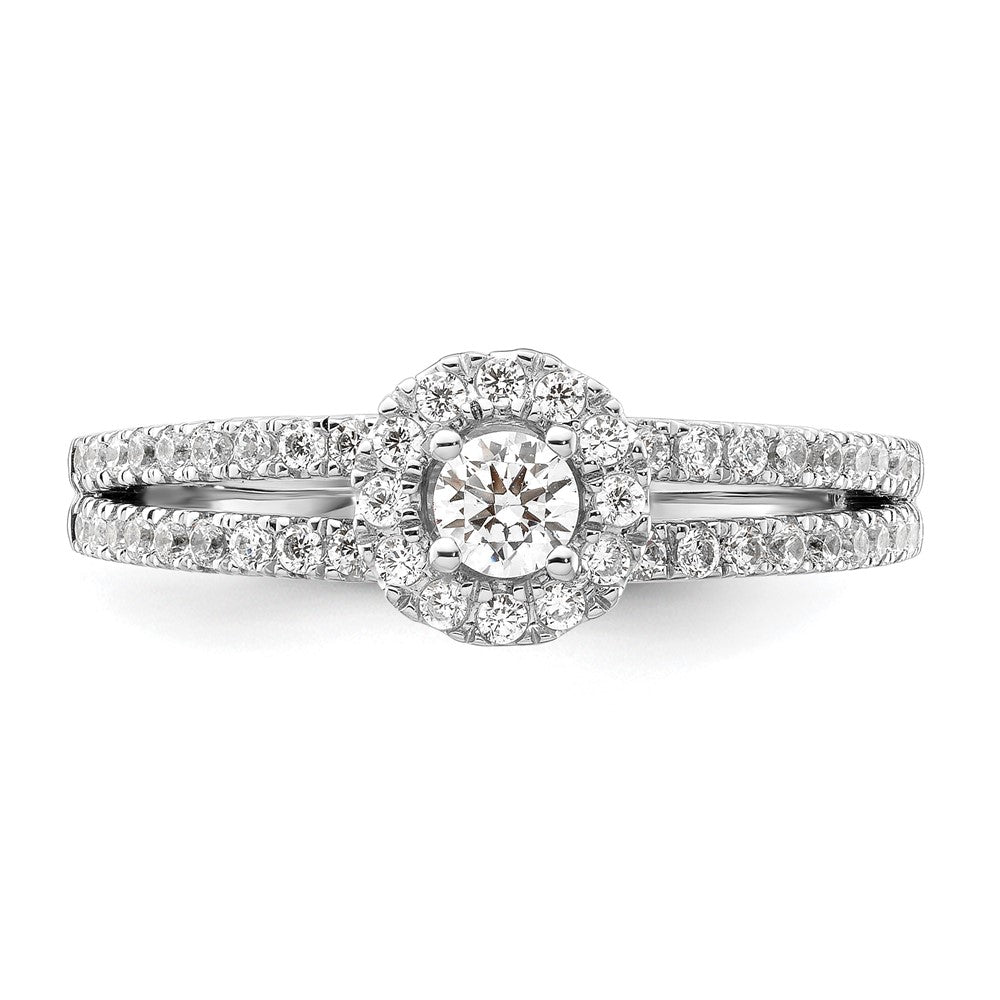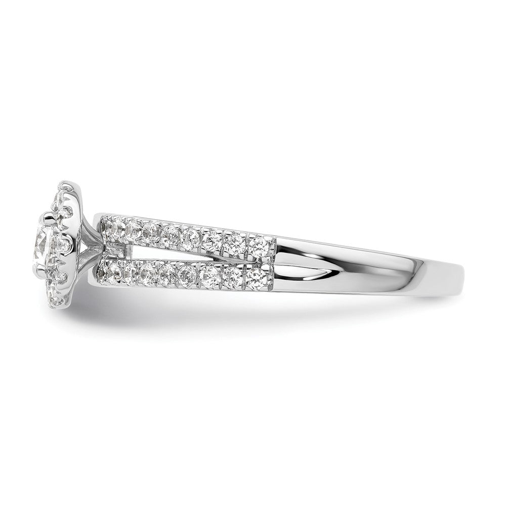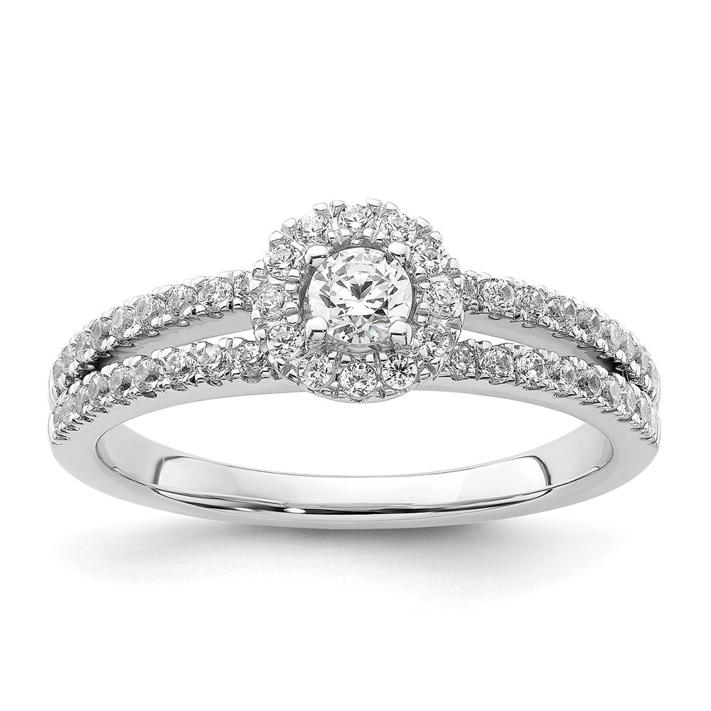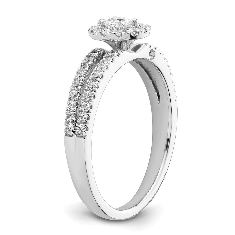 The 14K White Gold Lab Grown VS/SI FGH Diamond Two Promises Halo Engagement Ring graces your hand with elegance and sustainability. Crafted from pure 14K white gold, it beams with rhodium polish. The center showcases a stunning 0.1532-carat round lab-grown diamond, while the halo and band sparkle with 48 additional lab-grown gems. Each stone radiates a FGH color grade and VS/SI clarity for exceptional brilliance. Available in sizes 6.00 to 8.00, this ring embodies commitment and modern charm. Let the 14K White Gold Lab Grown VS/SI FGH Diamond Two Promises Halo Engagement Ring be the symbol of your everlasting love.