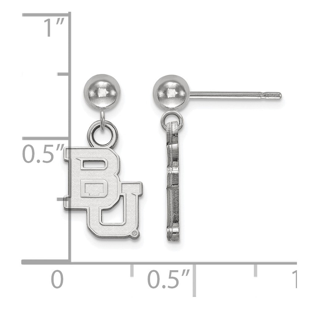 Show off your school pride with the LogoArt Baylor University Bears Dangle Ball Post Earrings. Crafted from 14K white gold with a polished finish, these earrings measure 16 mm long and feature a charming 10 mm by 11 mm Baylor Bear logo charm. With laser-cut detail and rhodium plating, they shine bright and resist tarnish. The earrings are designed for women and offer a secure post and push-back closure for easy wear. Perfect for showing love for Baylor, the LogoArt Baylor University Bears Dangle Ball Post Earrings combine style with school spirit in a truly eye-catching way.