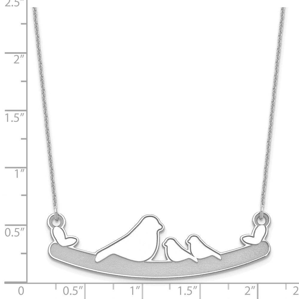 Celebrate the bond of family with the 14K White Gold Mom And 2 Baby Birds Necklace. This delicate piece features a sleek 18-inch cable chain with a subtle 1 mm width, plated in shiny rhodium for extra luster. The pendant showcases a heartfelt design of a mother bird with two small chicks, making it a perfect gift for moms or loved ones. Lightweight and finely crafted, the necklace balances elegance with meaningful symbolism. Whether you wear it daily or keep it for special moments, the 14K White Gold Mom And 2 Baby Birds Necklace is a timeless reminder of love and family.